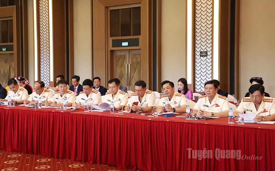 Các đại biểu cơ bản nhất trí với nội dung các văn kiện trình Đại hội. Đồng thời tập trung thảo luận, trong đó đánh giá những kết quả đạt được, thẳng thắn chỉ rõ hạn chế, xác định nguyên nhân và đề xuất giải pháp thực hiện hiệu quả các nội dung về: Đổi mới, nâng cao chất lượng, hiệu quả phong trào Toàn dân bảo vệ an ninh Tổ quốc; đấu tranh phòng, chống tội phạm, tệ nạn xã hội và vi phạm pháp luật trên địa bàn tỉnh. Thực trạng và giải pháp giảm nghèo bền vững vùng đồng bào dân tộc thiểu số tại địa phương.