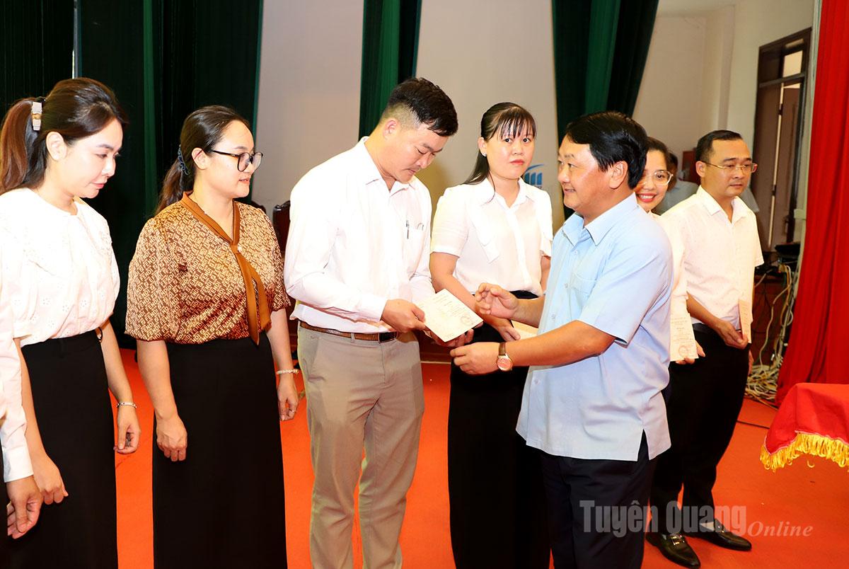 Đồng chí Hầu A Lềnh, Ủy viên BCH Trung ương Đảng, Bí thư Tỉnh ủy và đồng chí Nghiêm Phú Cường, Phó Chủ nhiệm UBKT Trung ương trao Giấy chứng nhận cho các học viên.
