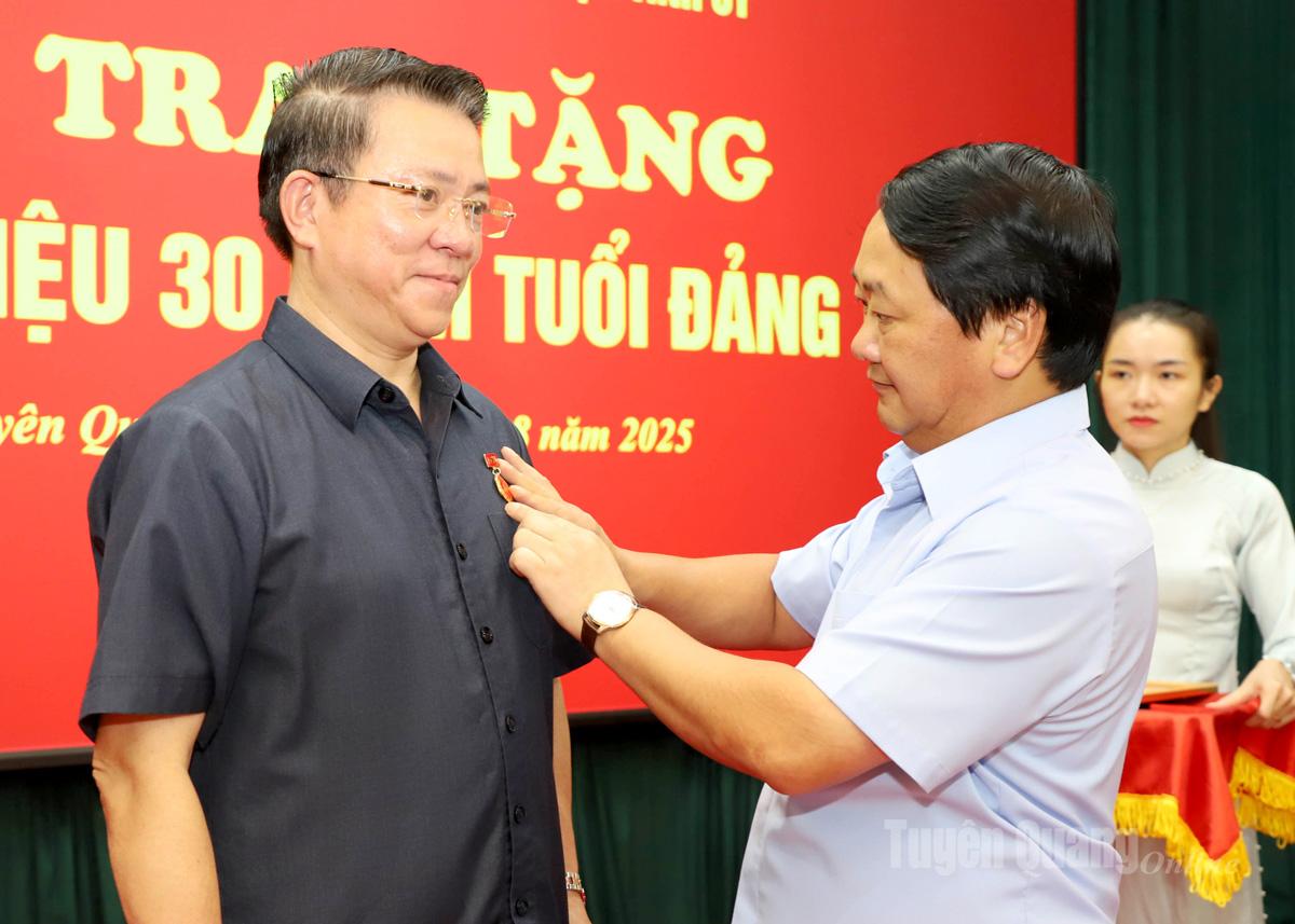 Đồng chí Bí thư Tỉnh ủy Hầu A Lềnh đã trao Huy hiệu 30 năm tuổi Đảng cho đồng chí Trần Mạnh Lợi, Ủy viên Ban Thường vụ Tỉnh ủy, Trưởng ban Tuyên giáo và Dân vận Tỉnh ủy; trao Huy hiệu 80 năm tuổi Đảng cho đảng viên Nguyễn Thị Toàn (98 tuổi), Chi bộ Tân Hà 9, Đảng bộ phường Minh Xuân.