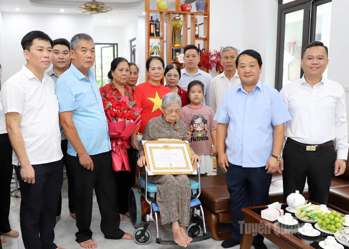 Bí thư Tỉnh ủy Hầu A Lềnh trao Huy hiệu 80 năm tuổi Đảng và cùng lãnh đạo Đảng ủy phường Minh Xuân, Chi bộ 9 Tân Hà chúc mừng đảng viên Nguyễn Thị Toàn.