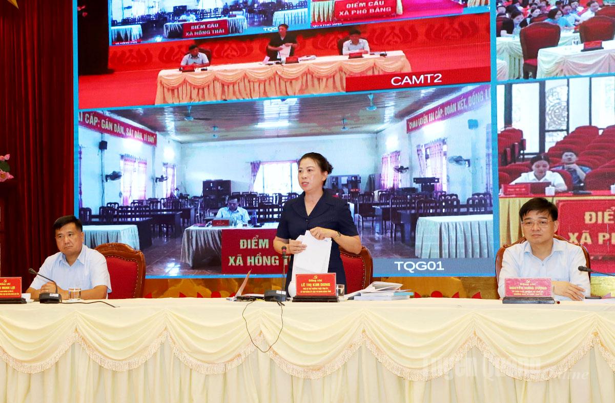 Phát biểu kết luận hội nghị, đồng chí Lê Thị Kim Dung, Phó Bí thư Thường trực Tỉnh ủy cảm ơn và đánh giá cao những ý kiến tâm huyết, trách nhiệm của các đồng chí lãnh đạo chủ chốt của tỉnh và lãnh đạo các xã, phường tại các điểm cầu.