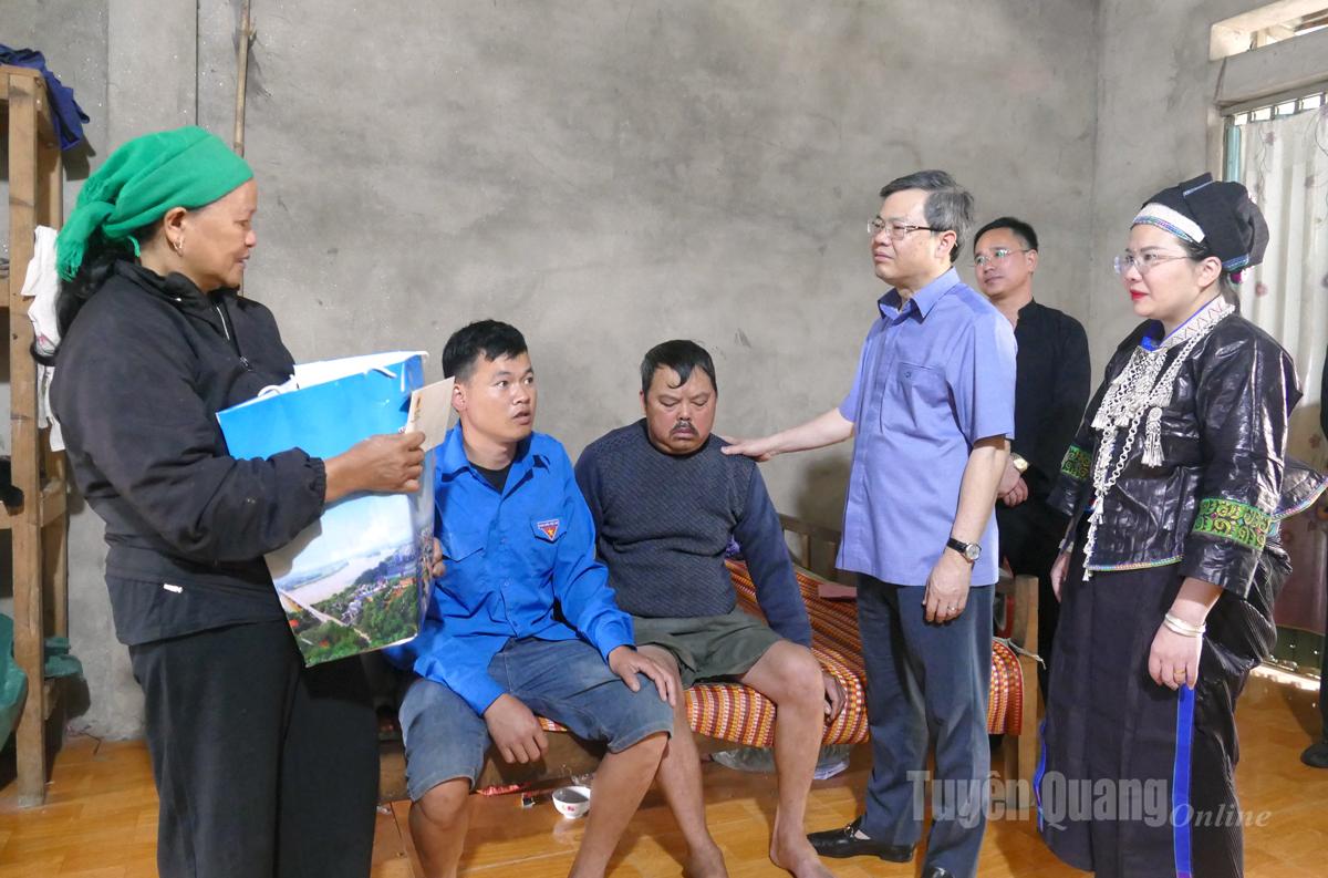 Đồng chí Nguyễn Văn Sơn, Phó Bí thư, Chủ tịch HĐND tỉnh thăm, tặng quà gia đình ông Vàng Văn Yêng, thôn Táo Thượng.