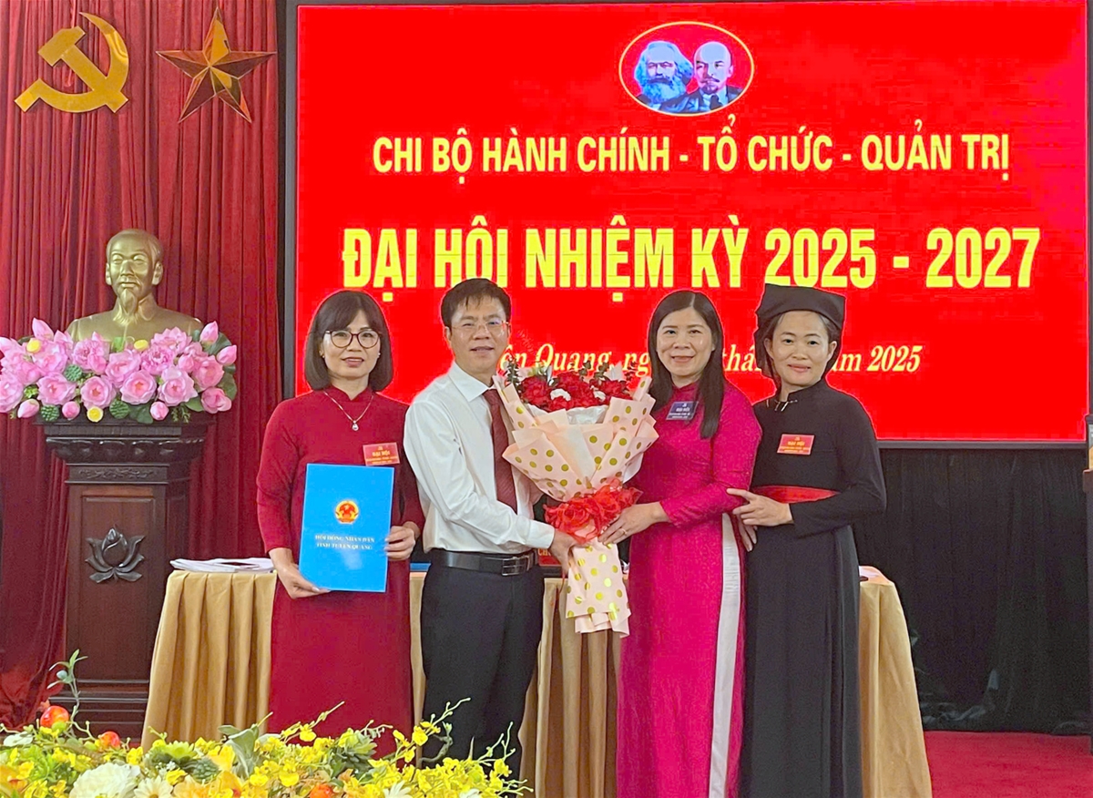 Đại hội đã công bố Quyết định chỉ định Ban Chấp hành Chi bộ Hành chính - Tổ chức - Quản trị nhiệm kỳ 2025-2027; đồng chí Nguyễn Văn Hiền, Uỷ viên Ban Chấp hành Đảng bộ, Chánh Văn phòng Đoàn đại biểu Quốc hội và Hội đồng nhân dân tỉnh được chỉ định giữ chức Bí thư Chi bộ; đồng chí Đặng Thị Xuân Thuỷ, Trưởng phòng Hành chính - Tổ chức - Quản trị giữ chức Phó Bí thư Chi bộ; đồng chí Hà Thị Lê, Văn thư viên giữ chức Chi uỷ viên.