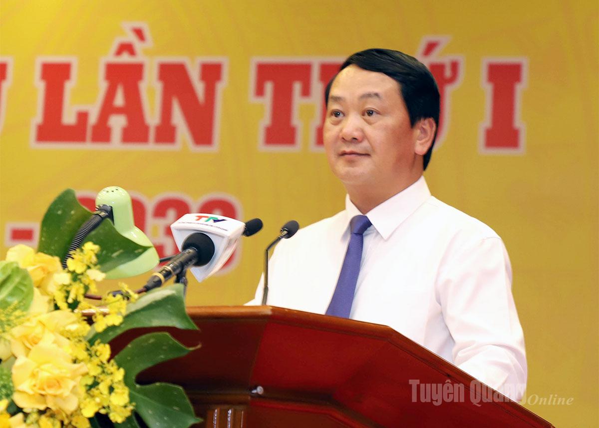 Đồng chí Bí thư Tỉnh ủy Hầu A Lềnh phát biểu chỉ đạo Đại hội. Ảnh: Thanh Nghị