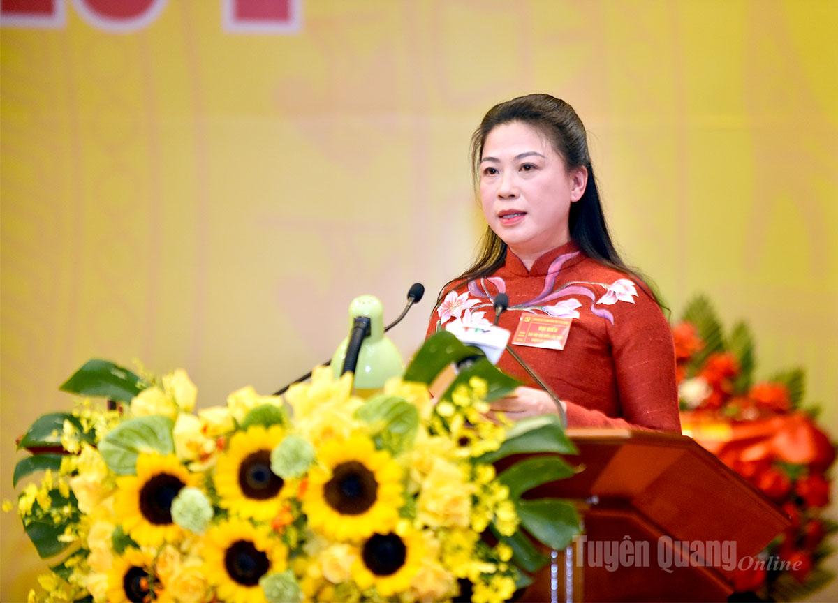 Đồng chí Lê Thị Kim Dung, Phó Bí thư Thường trực Tỉnh ủy, Bí thư Đảng ủy các cơ quan Đảng tỉnh phát biểu khai mạc Đại hội. Ảnh: Thanh Phúc