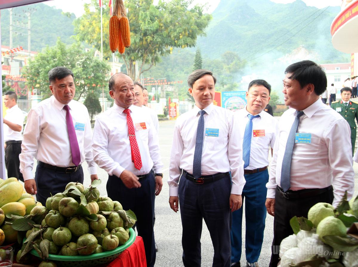 Đại biểu tham quan gian hàng sản phẩm đặc trưng của xã Yên Minh. Ảnh: Phạm Hoan.