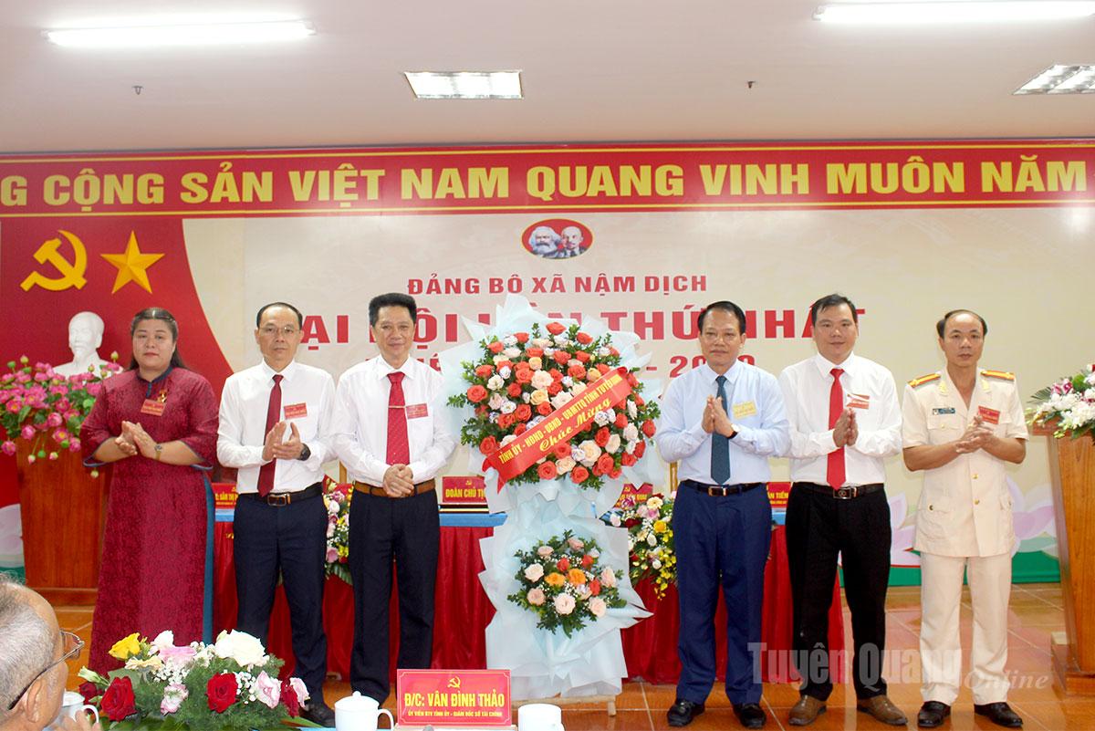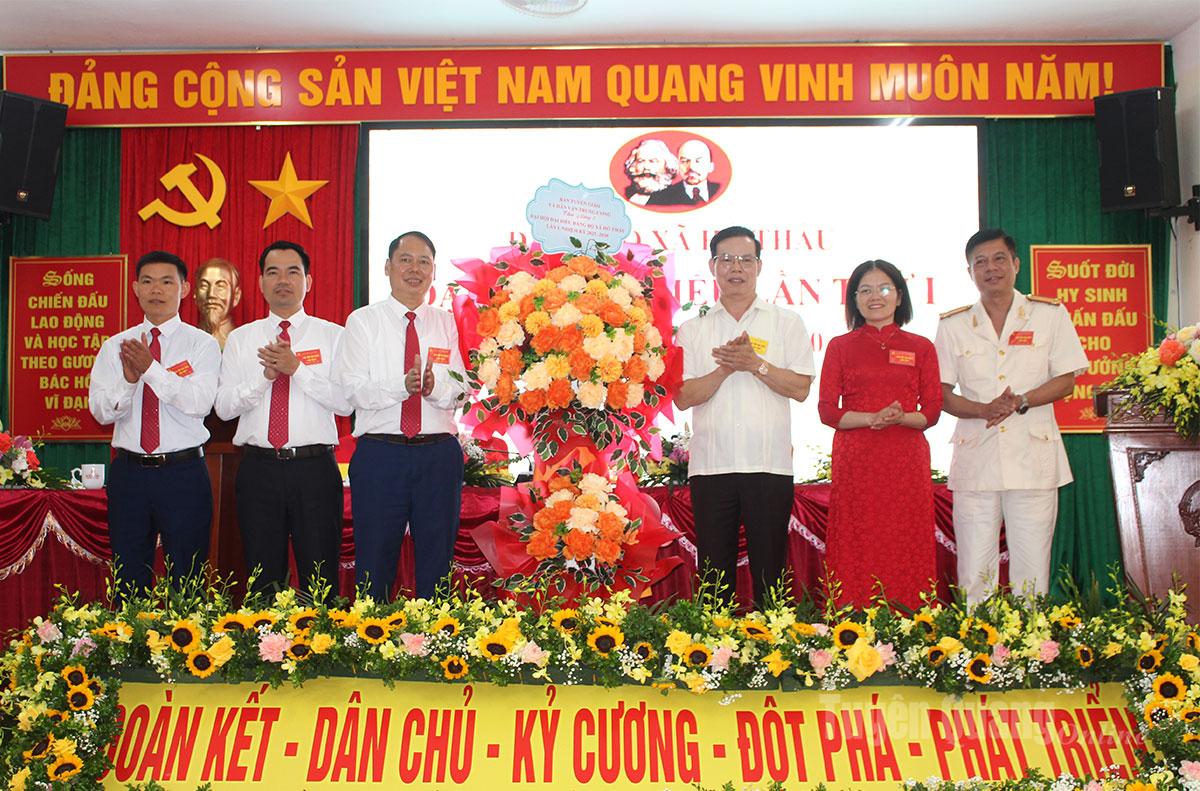 Đồng chí Vân Đình Thảo, Ủy viên BTV Tỉnh ủy, Giám đốc Sở Tài chính tặng hoa chúc mừng Ban Chấp hành Đảng bộ xã Nậm Dịch.