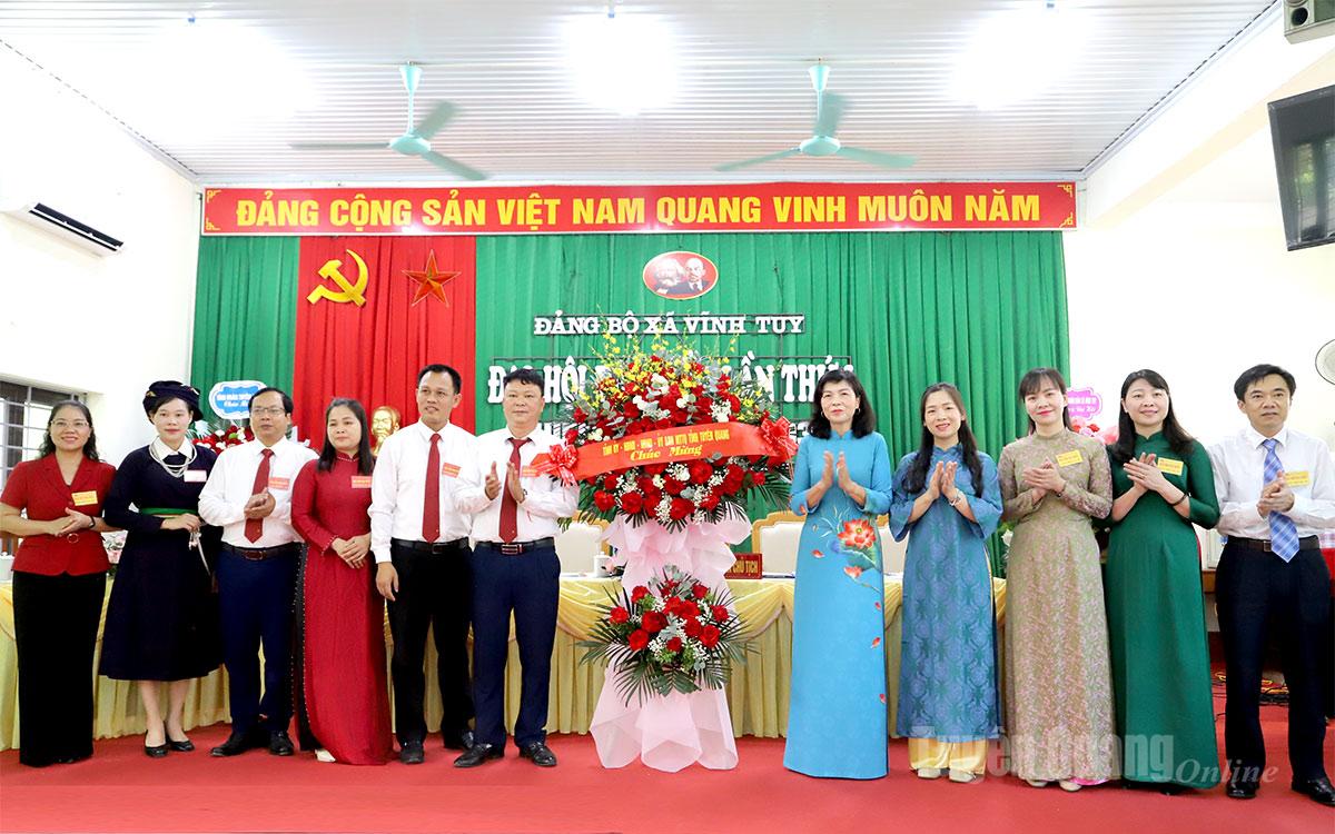 Phát biểu chỉ đạo Đại hội, đồng chí Phó Chủ tịch HĐND tỉnh Phạm Thị Minh Xuân biểu dương, ghi nhận những kết quả mà Đảng bộ xã Vĩnh Tuy đã đạt được trong nhiệm kỳ qua. Đồng chí mong muốn xã tiếp tục chăm lo xây dựng Đảng bộ trong sạch, vững mạnh toàn diện; nâng cao năng lực lãnh đạo, tăng sức chiến đấu của tổ chức Đảng; chú trọng xây dựng đội ngũ cán bộ đủ phẩm chất, năng lực, uy tín, tận tâm, tận lực với công việc; thực nghiêm nguyên tắc tập trung dân chủ và kỷ luật trong Đảng; thực hiện chủ chương của Đảng về sắp xếp, tinh gọn bộ máy chính quyền địa phương hai cấp để phục vụ nhân dân tốt hơn.