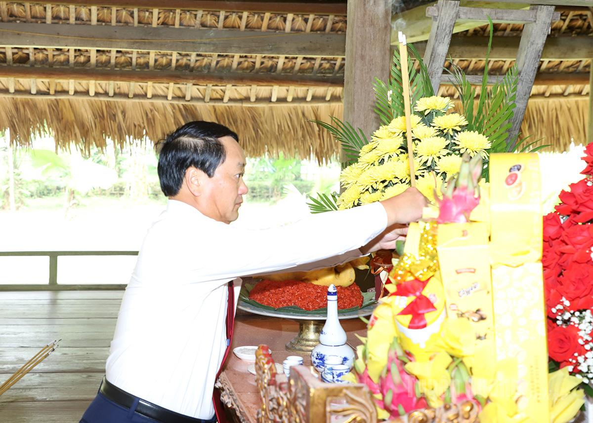Bí thư Tỉnh ủy Hầu A Lềnh dâng hương tại Đình Tân Trào. Ảnh: Văn Nghị.