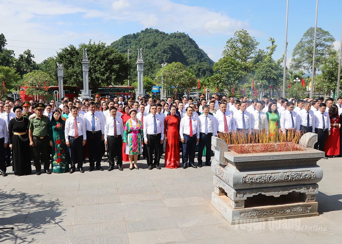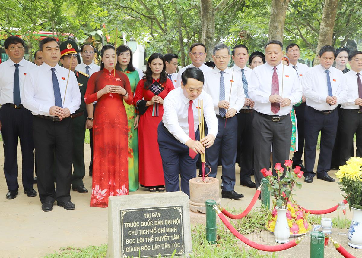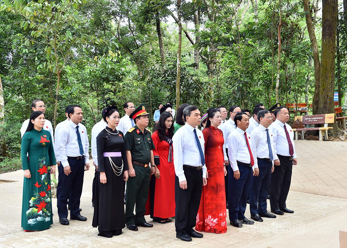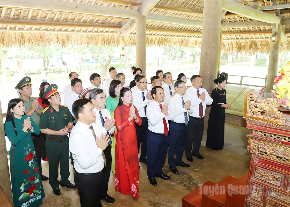 Đoàn đại biểu tỉnh đã tới đặt hoa, dâng hương tại lán Nà Nưa, Đình Tân Trào, Tượng đài Bác Hồ ở Tân Trào, Khu tưởng niệm Chủ tịch Hồ Chí Minh và các vị tiền bối cách mạng.