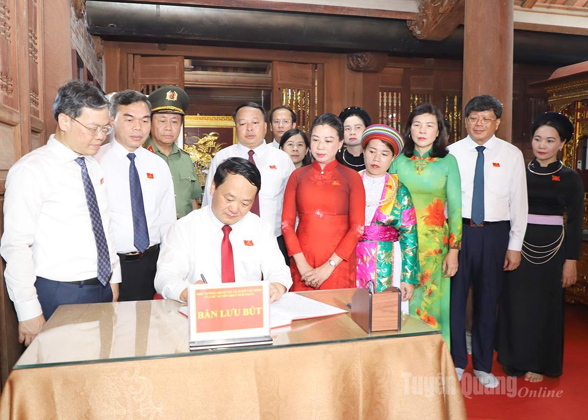 Trước Anh linh Chủ tịch Hồ Chí Minh và các vị tiền bối cách mạng, Đoàn khẳng định: Khắc ghi lời dạy của Bác, trong nhiệm kỳ vừa qua, với tinh thần đoàn kết, thống nhất cao của cả hệ thống chính trị, cán bộ, đảng viên và Nhân dân tỉnh Tuyên Quang đã đạt được những thành tựu quan trọng. Kinh tế tiếp tục tăng trưởng và có nhiều khởi sắc. Các lĩnh vực văn hoá, xã hội được quan tâm, chăm lo; các chính sách an sinh xã hội; quốc phòng, an ninh được tăng cường, giữ vững. Công tác xây dựng Đảng và hệ thống chính trị được tăng cường; năng lực lãnh đạo, sức chiến đấu của cấp ủy, tổ chức Đảng được nâng lên. Đời sống vật chất và tinh thần của nhân dân từ thành thị đến các bản làng xa xôi, khu vực biên giới có nhiều khởi sắc.