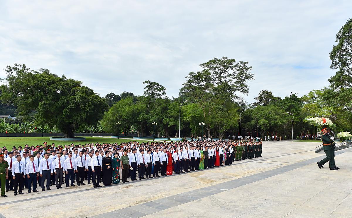 Đoàn đại biểu dự Đại hội Đảng bộ tỉnh lần thứ I dâng hương tại Nhà tưởng niệm Chủ tịch Hồ Chí Minh và các vị tiền bối cách mạng. Ảnh: Văn Nghị.