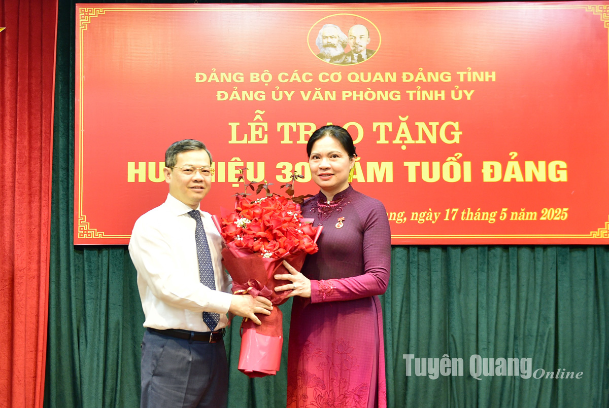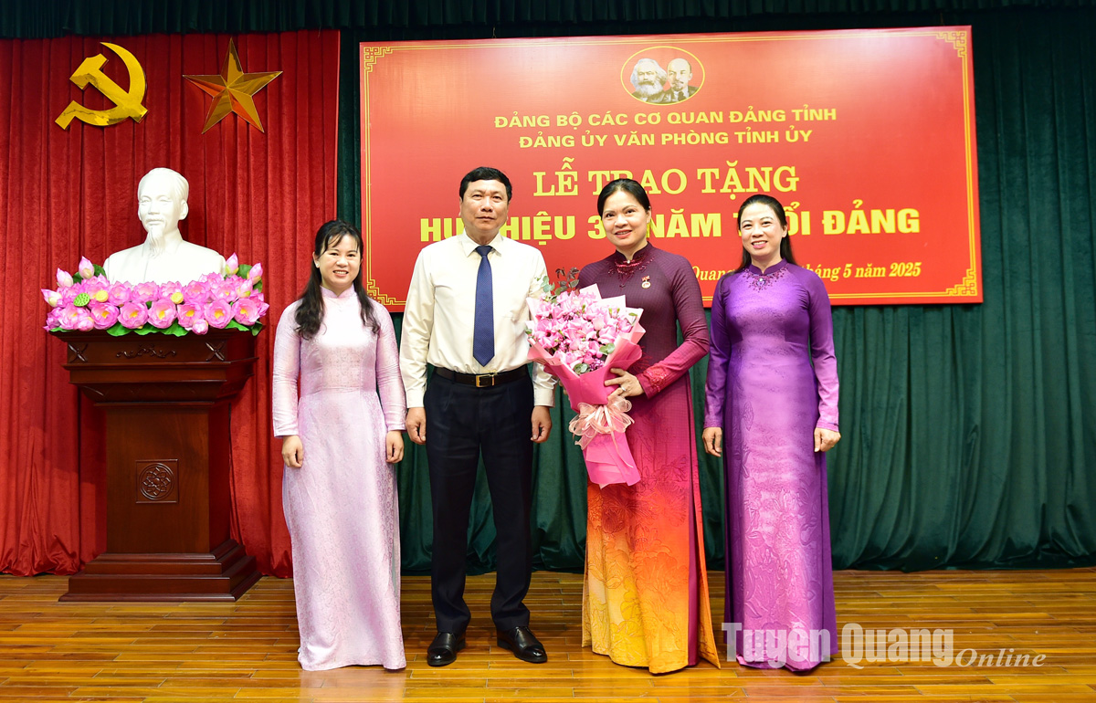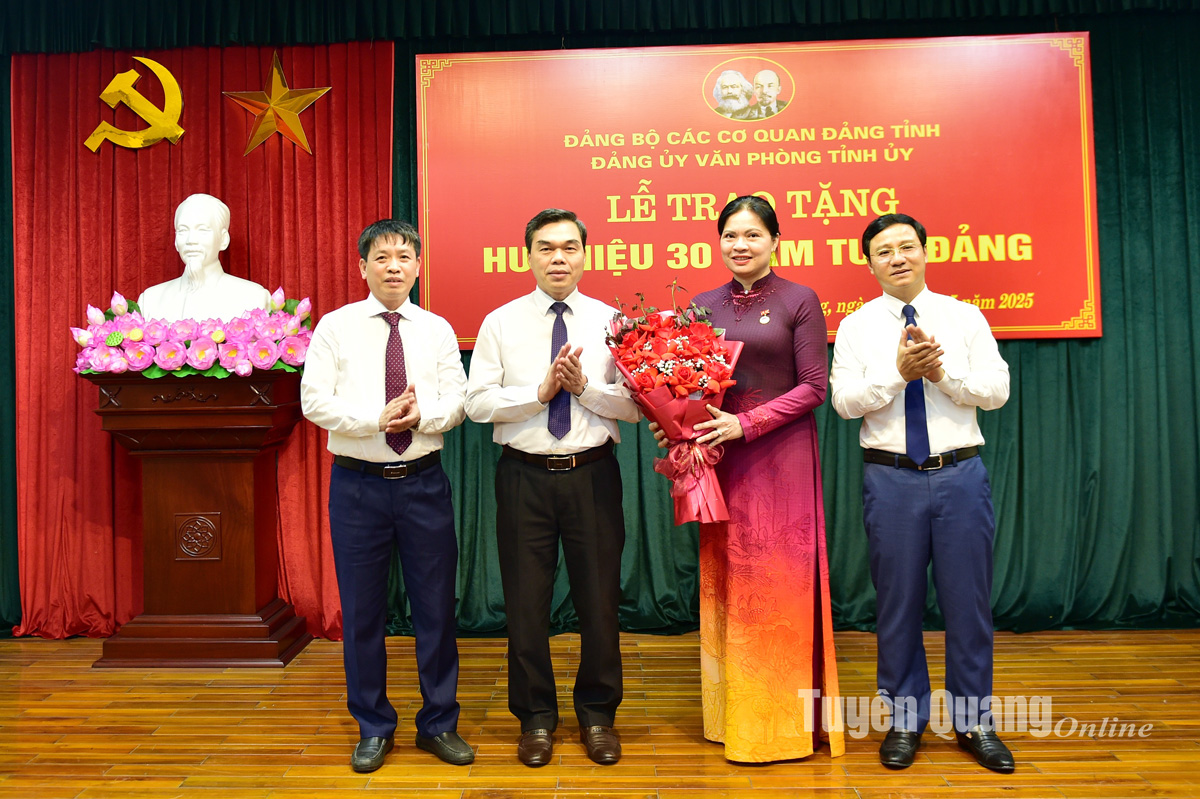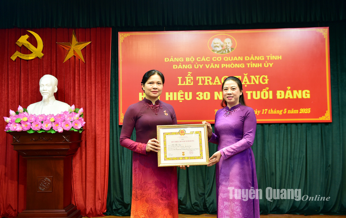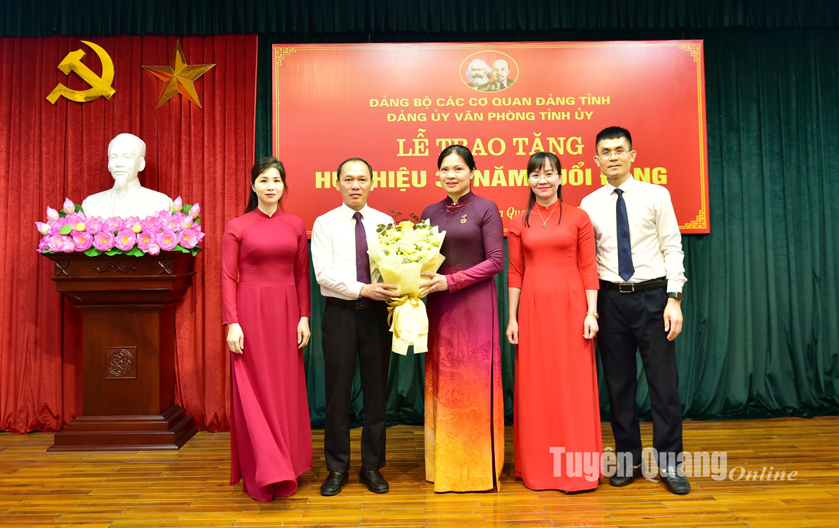 Thay mặt Ban Thường vụ Tỉnh ủy, đồng chí Lê Thị Kim Dung, Phó Bí thư Thường trực Tỉnh ủy, Chủ tịch HĐND tỉnh, Bí thư Đảng ủy các cơ quan Đảng tỉnh đã trao huy hiệu 30 năm tuổi Đảng cho đồng chí Hà Thị Nga, Uỷ viên BCH Trung ương Đảng, Bí thư Tỉnh ủy, Trưởng Đoàn đại biểu Quốc hội tỉnh Tuyên Quang.