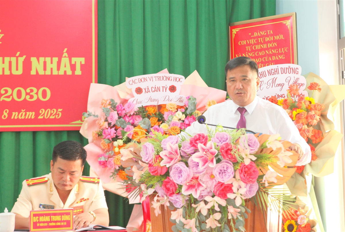 Phát biểu chỉ đạo tại Đại hội, đồng chí Hầu Minh Lợi, Ủy viên Ban Thường vụ Tỉnh uỷ, Phó Chủ tịch Thường trực Hội đồng nhân dân tỉnh thay mặt lãnh đạo tỉnh ghi nhận, biểu dương những kết quả toàn diện mà Đảng bộ và Nhân dân xã Cán Tỷ đã đạt được trong nhiệm kỳ qua. Đồng chí nhấn mạnh, sau khi sáp nhập, xã đã nhanh chóng ổn định tổ chức bộ máy, phát huy tinh thần đoàn kết, duy trì tăng trưởng kinh tế, bảo đảm an sinh xã hội, giữ vững quốc phòng - an ninh, củng cố hệ thống chính trị vững mạnh.