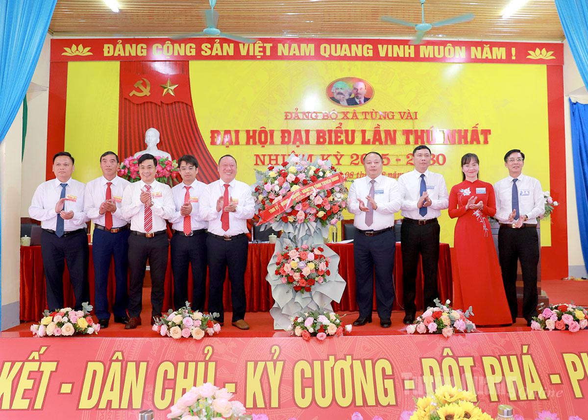 Tại Đại hội, các đồng chí lãnh đạo tỉnh đã tặng hoa chúc mừng Ban Chấp hành Đảng bộ, Ban Thường vụ Đảng ủy xã Tùng Vài, nhiệm kỳ 2025 - 2030; chúc mừng đồng chí Hạng Dương Thành giữ chức Bí thư Đảng ủy xã; chúc mừng Đoàn đại biểu đi dự Đại hội cấp trên.