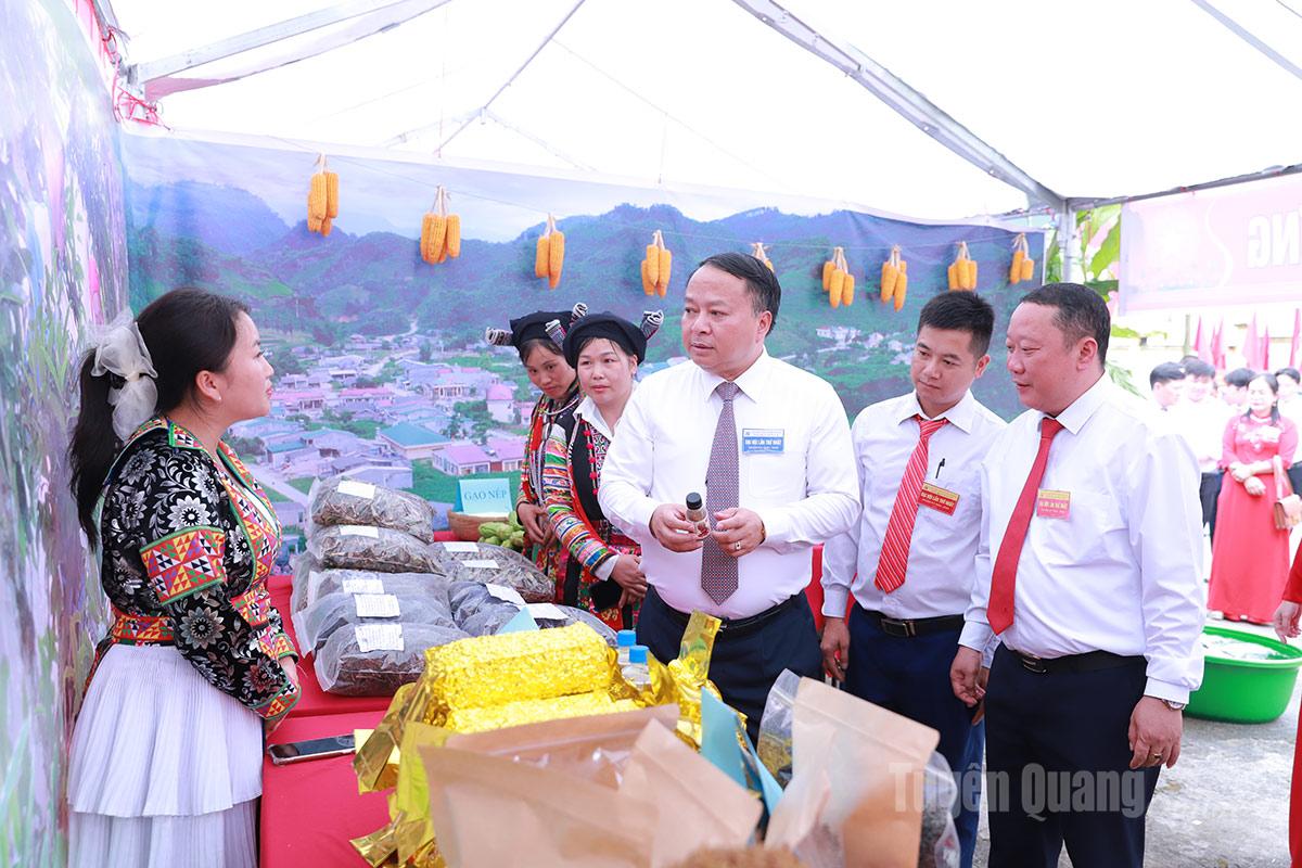 Chủ tịch UBND tỉnh Phan Huy Ngọc tham quan gian trưng bày sản phẩm nông sản đặc trưng, tiêu biểu của xã Tùng Vài.