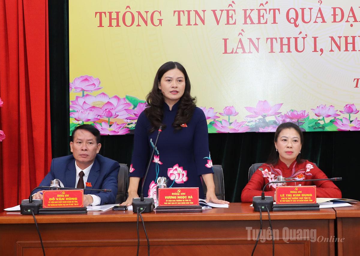 Tại buổi họp báo, đồng chí Trưởng ban Tuyên giáo và Dân vận Tỉnh ủy Trần Mạnh Lợi đã thông tin khái quát kết quả nổi bật của Đại hội. Sau 2,5 ngày làm việc khẩn trương, nghiêm túc, với tinh thần dân chủ, đoàn kết và đổi mới, Đại hội đại biểu Đảng bộ tỉnh lần thứ I đã thành công tốt đẹp, trở thành sự kiện chính trị trọng đại của Đảng bộ, quân và dân các dân tộc trong tỉnh.