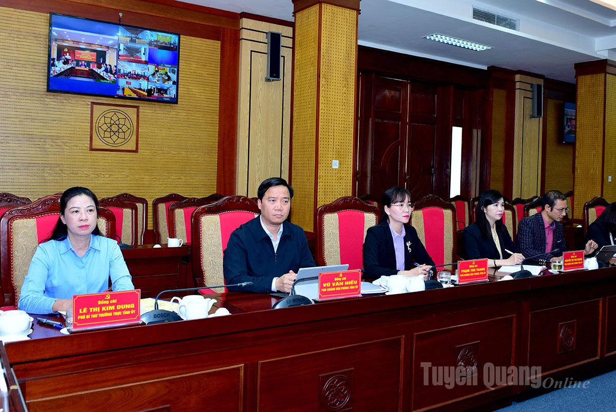 Các đồng chí: Hoàng Nhị Sơn, Ủy viên BCH Đảng bộ tỉnh, Chánh Văn phòng Tỉnh ủy; Trương Văn Nam và Vũ Thanh Tùng, Phó Chánh Văn phòng Tỉnh ủy đồng chủ trì hội nghị. Hội nghị được tổ chức theo hình thức trực tiếp kết hợp trực tuyến, kết nối từ điểm cầu Văn phòng Tỉnh ủy đến các điểm cầu Văn phòng Đảng ủy các xã, phường trên địa bàn tỉnh.