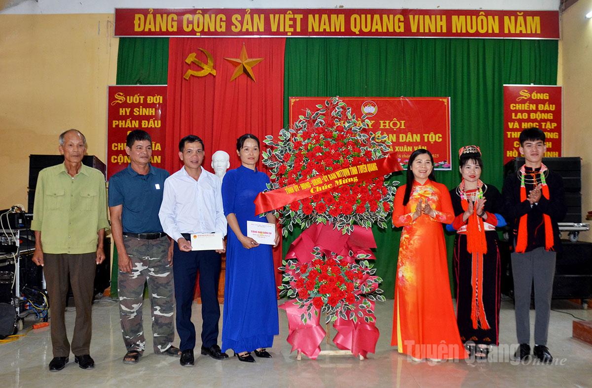 Phó Chủ tịch HĐND tỉnh Lê Thị Thanh Trà tặng hoa chúc mừng Ngày hội Đại đoàn kết cho Nhân dân thôn Éo, xã Xuân Vân.