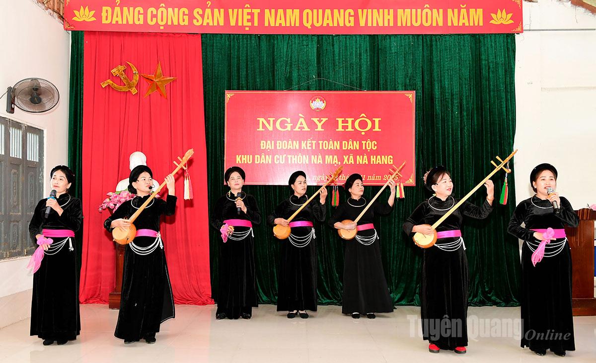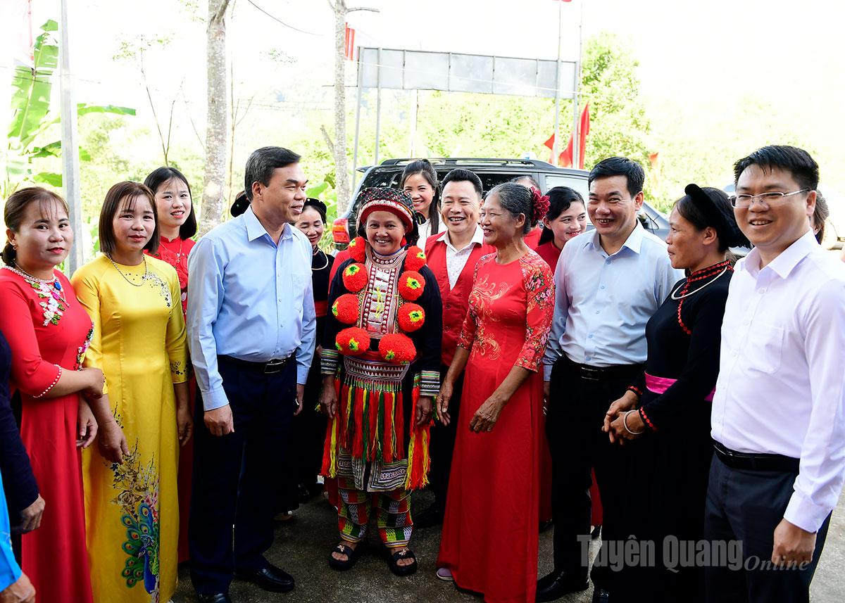 Đồng chí Ma Thế Hồng, Phó Bí thư Tỉnh ủy, Chủ tịch Ủy ban MTTQ Việt Nam tỉnh dự Ngày hội Đại đoàn kết toàn dân tộc thôn Nà Mạ, xã Nà Hang.