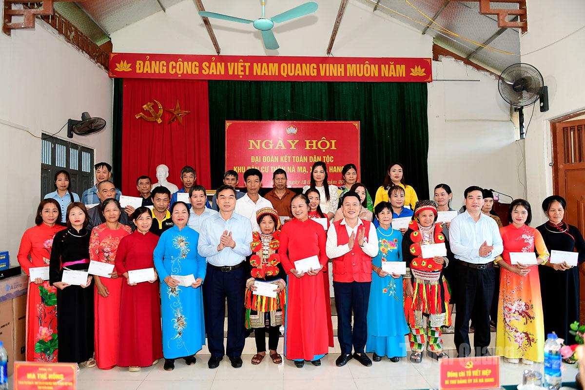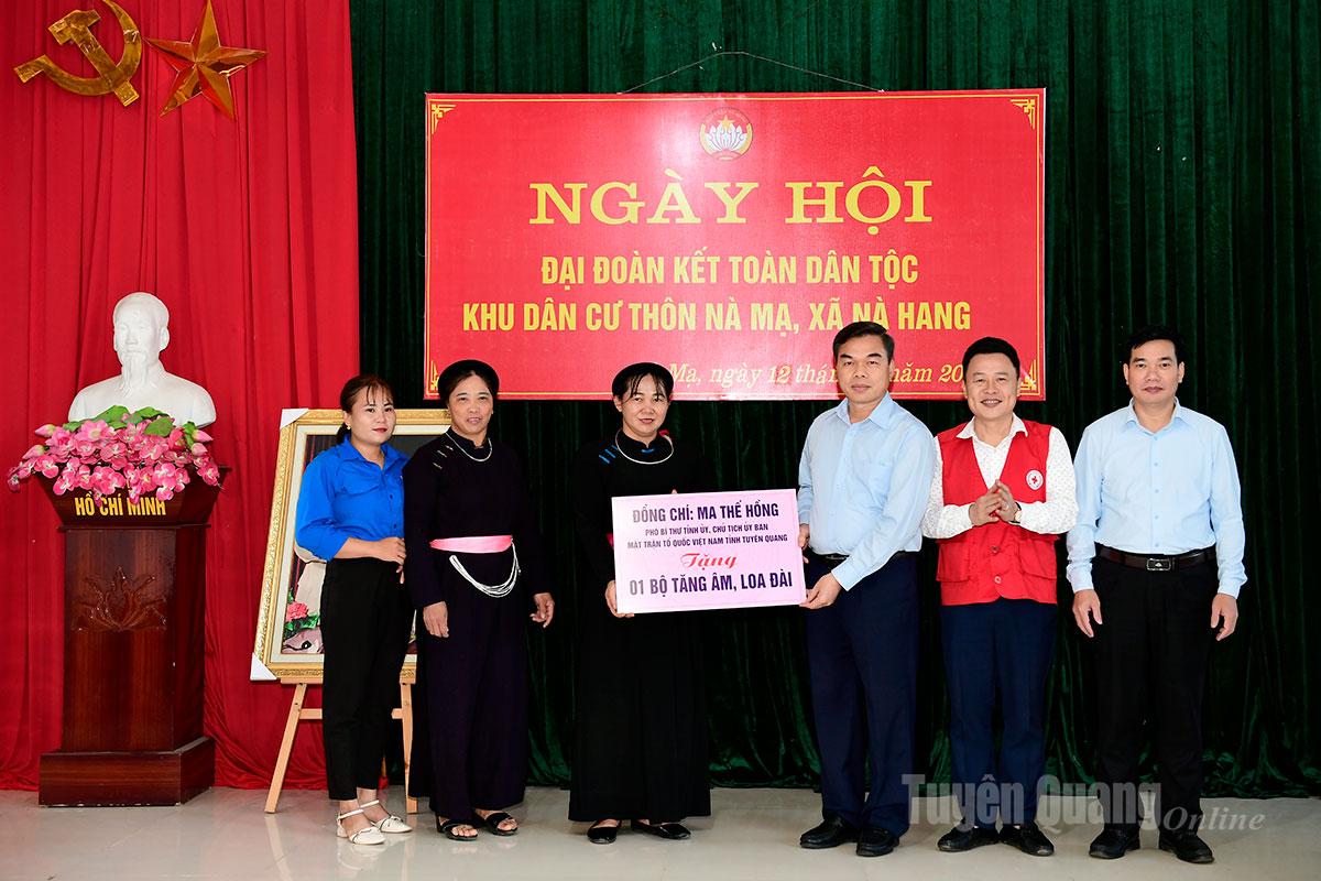 Nhân dịp này, đồng chí Phó Bí thư Tỉnh ủy, Chủ tịch Ủy ban Mặt trận Tổ quốc Việt Nam tỉnh Ma Thế Hồng đã tặng 30 suất quà cho các hộ dân trong thôn và 1 bộ tăng âm loa đài để thôn Nà Mạ tăng cường công tác thông tin, tuyên truyền, cổ động các phong trào thi đua.