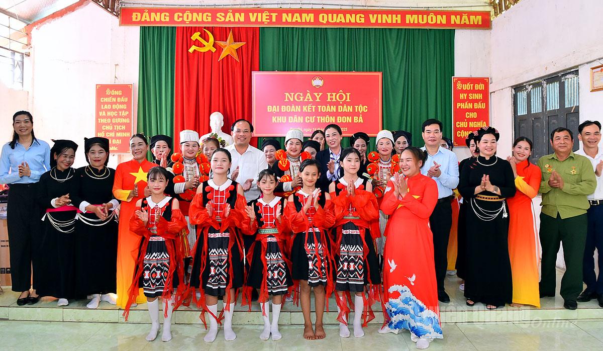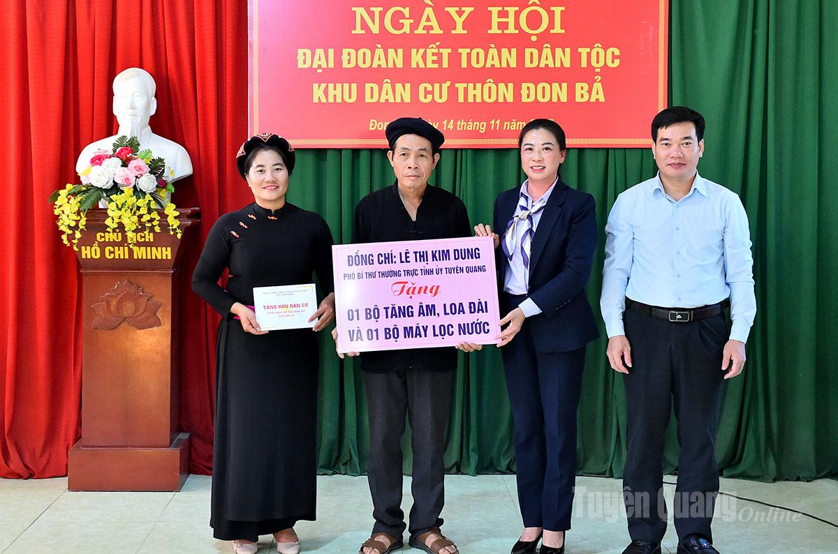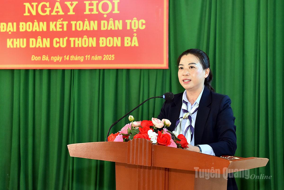 Phát biểu tại Ngày hội, đồng chí Lê Thị Kim Dung, Phó Bí thư Thường trực Tỉnh ủy bày tỏ niềm vui khi được chung vui Ngày hội Đại đoàn kết toàn dân tộc với bà con thôn Đon Bả. Đồng chí khẳng định, đoàn kết luôn là truyền thống quý báu, là sức mạnh làm nên mọi thắng lợi của dân tộc ta, và Ngày hội không chỉ là dịp ôn lại truyền thống mà còn là hành động thiết thực để gắn kết cộng đồng, củng cố niềm tin của Nhân dân đối với Đảng.