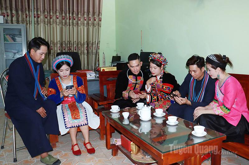 Cán bộ xã Mèo Vạc theo dõi thông tin Đại hội đại biểu Đảng bộ tỉnh qua các nền tảng số của Báo Tuyên Quang. Ảnh: Trần Kế.