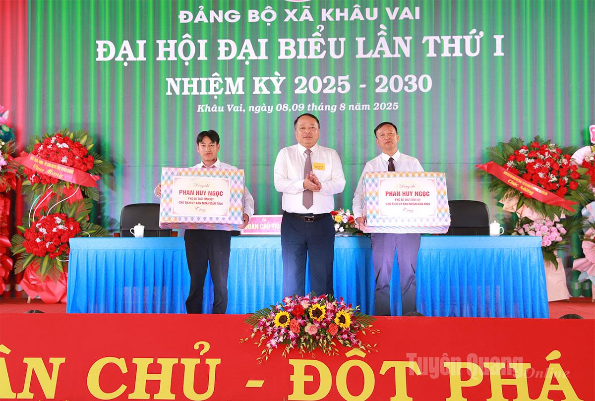 Phát biểu chỉ đạo Đại hội, đồng chí Phó Bí thư Tỉnh ủy, Chủ tịch UBND tỉnh Phan Huy Ngọc khẳng định: Để thực hiện thắng lợi các mục tiêu, trong đó mục tiêu trọng tâm là “Phấn đấu đến năm 2030 xã Khâu Vai trở thành điểm sáng về phát triển du lịch, dịch vụ, tỷ lệ hộ nghèo xuống dưới 30%”, xã cần tập trung lãnh đạo, chỉ đạo xây dựng Đảng và hệ thống chính trị trong sạch, vững mạnh về tư tưởng, tổ chức và đạo đức; xác định cụ thể các đề án, phương án, nhiệm vụ trọng tâm để thực hiện thành công mục tiêu Nghị quyết Đại hội với tinh thần “rõ người, rõ việc, rõ thời gian, rõ trách nhiệm, rõ sản phẩm, rõ thẩm quyền”.