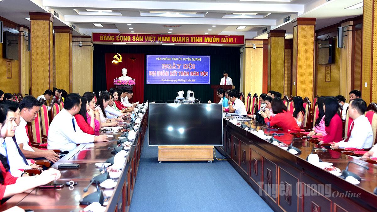 Các đại biểu tham dự Ngày hội Đại đoàn kết toàn dân tộc tại Văn phòng Tỉnh ủy.