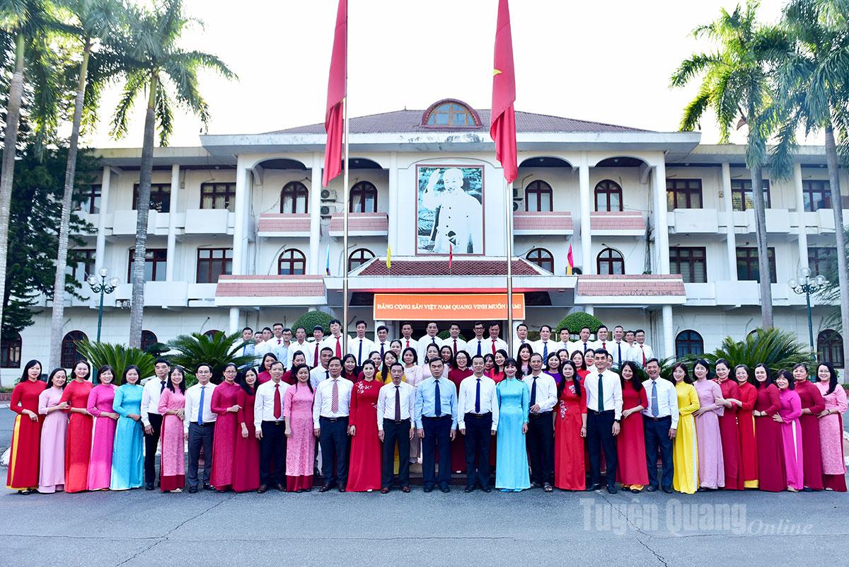 Đồng chí Ma Thế Hồng, Phó Bí thư Tỉnh ủy, Chủ tịch Ủy ban MTTQ tỉnh chụp ảnh lưu niệm cùng tập thể cán bộ, công chức, người lao động Văn phòng Tỉnh uỷ.