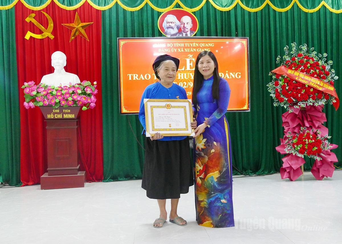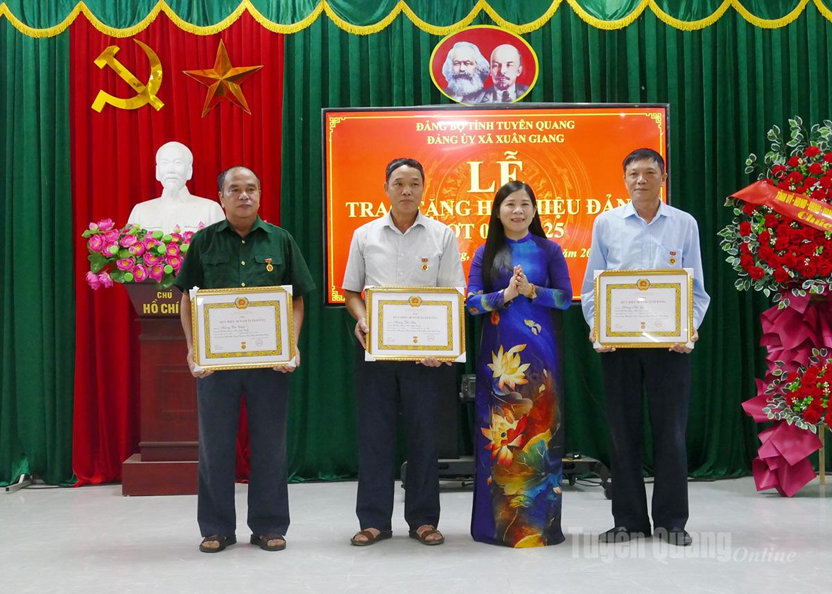 Tại buổi lễ, đồng chí Lê Thị Thanh Trà đã trao Huy hiệu 60 năm tuổi Đảng cho đảng viên Hoàng Thị Chước, đảng viên Chi bộ thôn Chang; Huy hiệu 40 năm tuổi Đảng cho đảng viên Hoàng Văn Lăn, Chi bộ thôn Chang và Hoàng Hải Lý, Hoàng Văn Canh thuộc Chi bộ thôn Trung. Lãnh đạo xã Xuân Giang trao Huy hiệu 30 năm tuổi Đảng cho 9 đảng viên trên địa bàn.