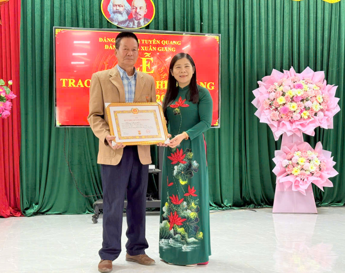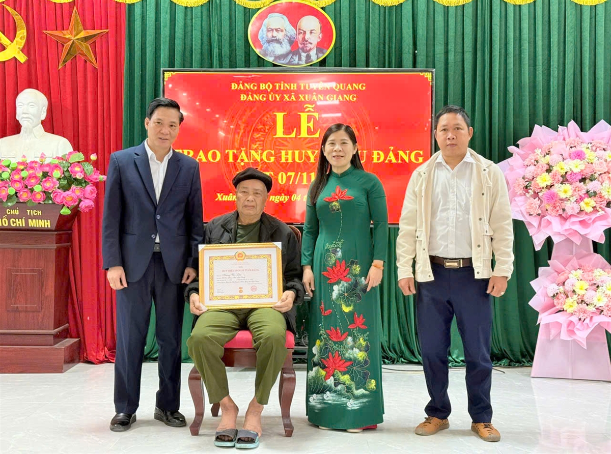 Trong dịp trao tặng Huy hiệu Đảng đợt 07/11 này, tỉnh Tuyên Quang có 786 đảng viên vinh dự được nhận Huy hiệu Đảng (776 đảng viên được trao tặng Huy hiệu Đảng và 10 đảng viên được truy tặng Huy hiệu Đảng), trong đó Đảng bộ xã Xuân Giang có 09 đảng viên vinh dự đón nhận Huy hiệu của Đảng: 02 đồng chí được tặng Huy hiệu 60 năm tuổi Đảng, 01 đồng chí được tặng Huy hiệu 40 năm tuổi Đảng và 06 đồng chí được tặng Huy hiệu 30 năm tuổi Đảng.