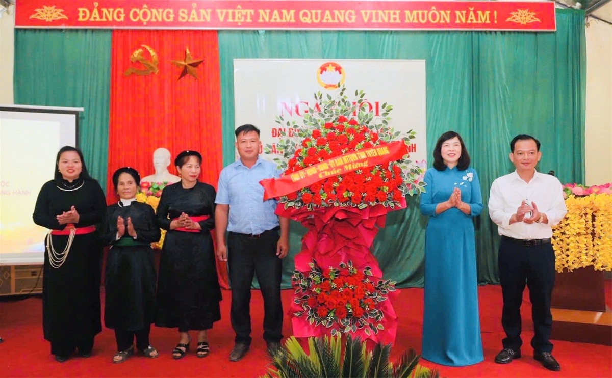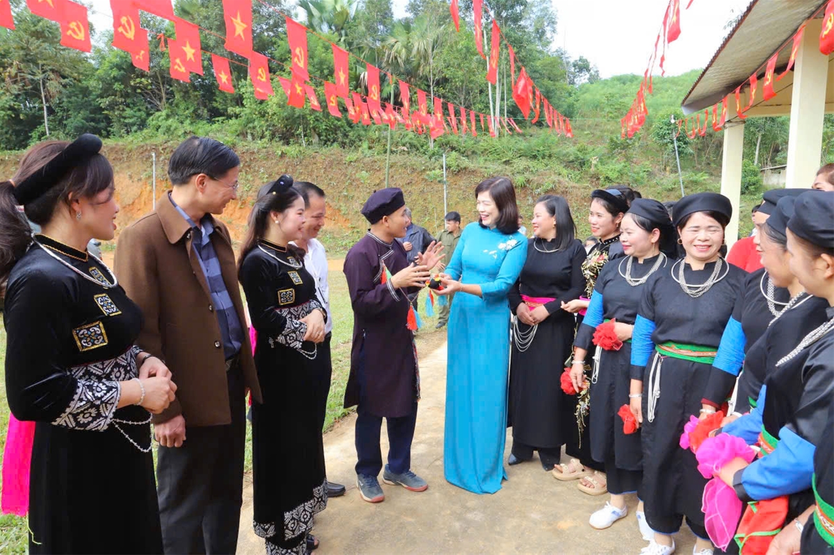 Phó Chủ tịch HĐND tỉnh Phạm Thị Minh Xuân tặng hoa, quà của Tỉnh ủy, HĐND, UBND, Ủy ban MTTQ tỉnh cho thôn Me Hạ.