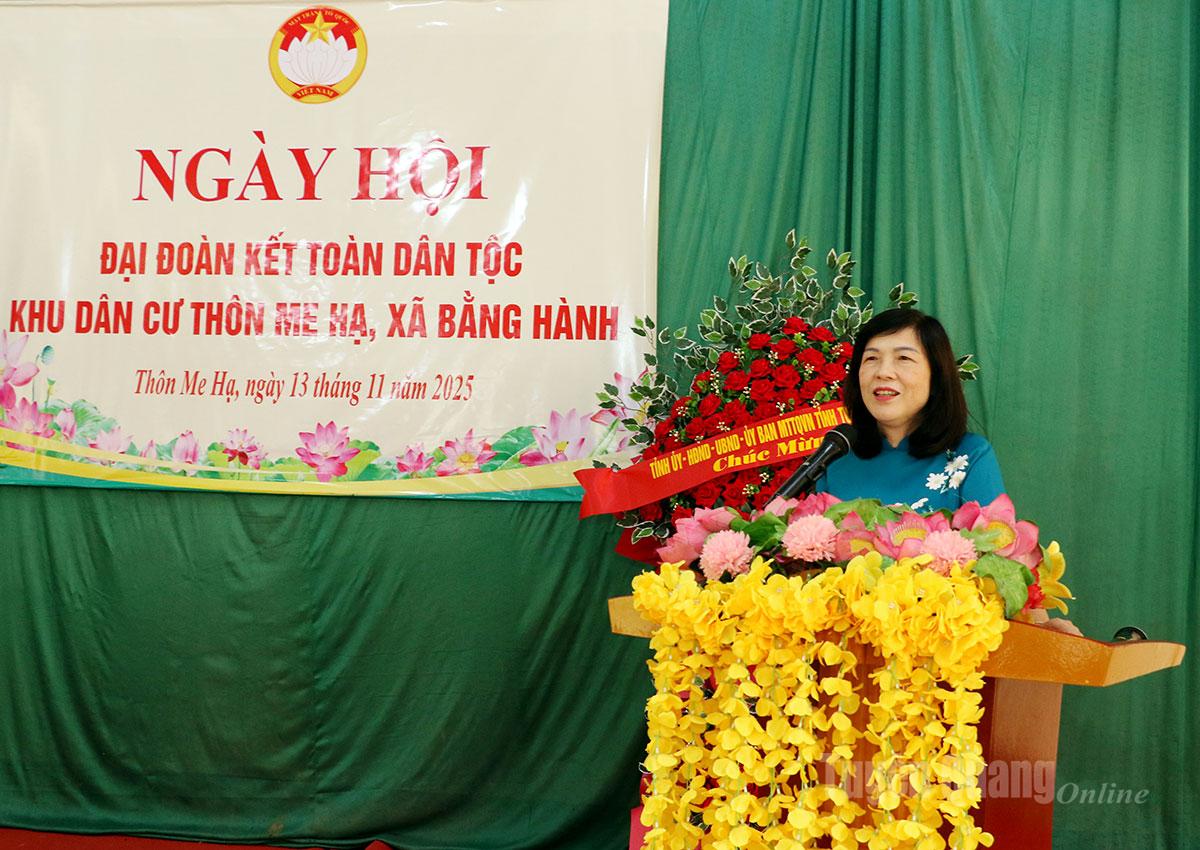 Đồng thời, đồng chí Phó Chủ tịch Hội đồng nhân dân tỉnh tin tưởng rằng trong thời gian tới, cấp ủy, chính quyền, Mặt trận Tổ quốc thôn Me Hạ, xã Bằng Hành sẽ tiếp tục củng cố và phát huy khối đại đoàn kết toàn dân tộc, tăng cường sự đồng thuận trong nhân dân, tạo sức mạnh tổng hợp để cùng với các thôn khác của xã Bằng Hành thực hiện thắng lợi các nhiệm vụ chính trị, phát triển kinh tế – xã hội của địa phương. Đổi mới nội dung, phương thức hoạt động của Ban Công tác Mặt trận, phát huy vai trò làm chủ của nhân dân trong giám sát, phản biện xã hội, tham gia xây dựng Đảng, chính quyền trong sạch, vững mạnh; đẩy mạnh ứng dụng công nghệ thông tin, chuyển đổi số trong công tác tuyên truyền, vận động. Tiếp tục đẩy mạnh các phong trào thi đua yêu nước và các cuộc vận động lớn theo đúng chỉ đạo, hướng dẫn của Trung ương và của tỉnh đề ra; quan tâm nâng cao đời sống vật chất, tinh thần của nhân dân, chăm lo chính sách an sinh xã hội, giữ gìn bản sắc văn hóa dân tộc, bảo đảm an ninh trật tự, an toàn giao thông, bảo vệ môi trường, góp phần xây dựng khu dân cư ngày càng phát triển, văn minh và hạnh phúc.