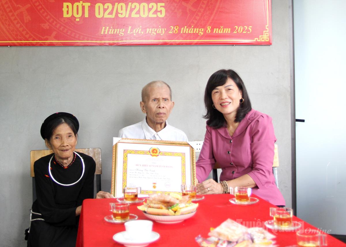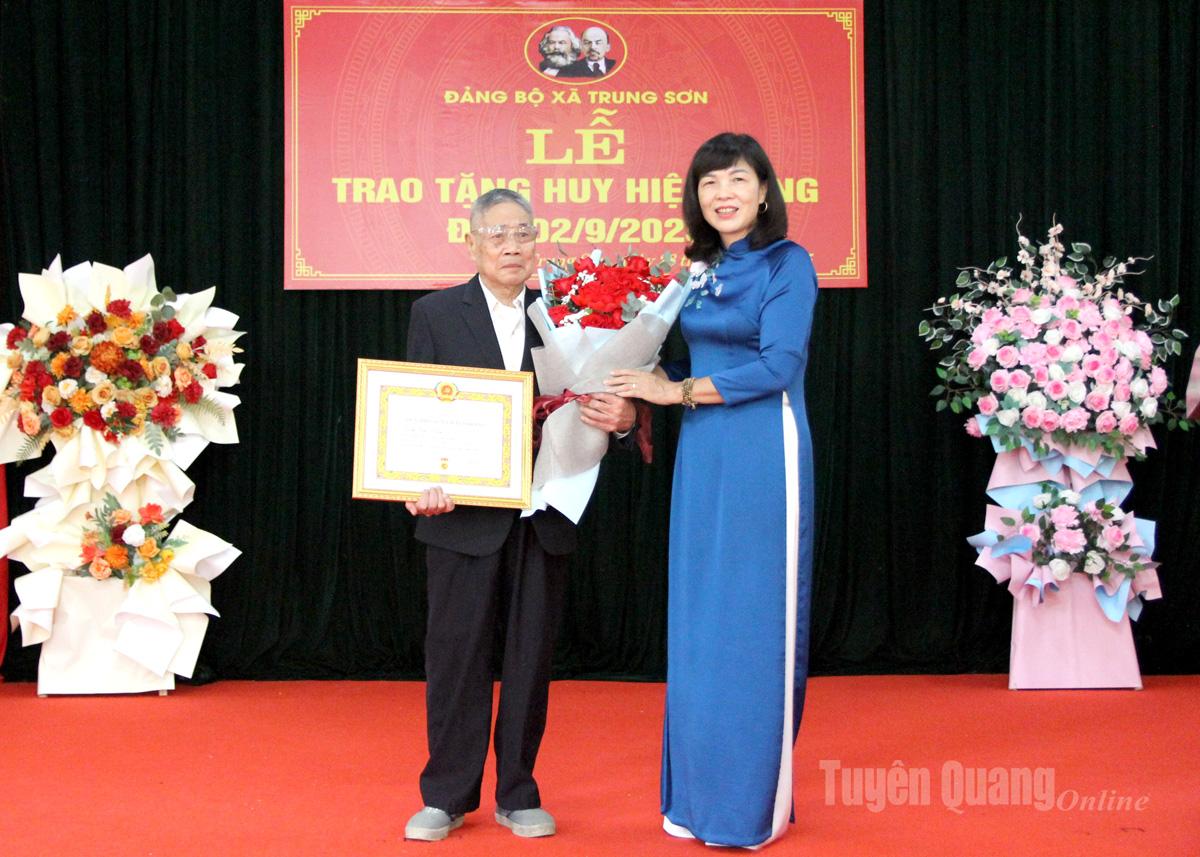 Đồng chí Phó Chủ tịch HĐND tỉnh đã trao Huy hiệu 65 năm tuổi Đảng cho đồng chí Đinh Văn Kiến, đảng viên Chi bộ Thôn 1, Đảng bộ xã Trung Sơn và đồng chí Hoàng Văn Canh, đảng viên Chi bộ Thôn Toòng, Đảng bộ xã Hùng Lợi.