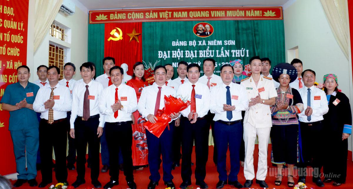 Ban Chấp hành Đảng bộ xã Niêm Sơn nhiệm kỳ 2025-2030 ra mắt Đại hội. Ảnh: Trần Kế.