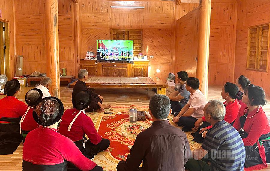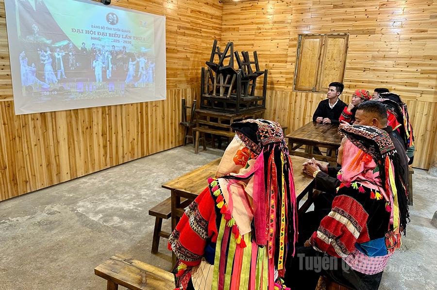Người dân thôn Tân Lập, xã Tân Trào theo dõi Đại hội đại biểu Đảng bộ tỉnh lần thứ I. Ảnh: Lan Phương.