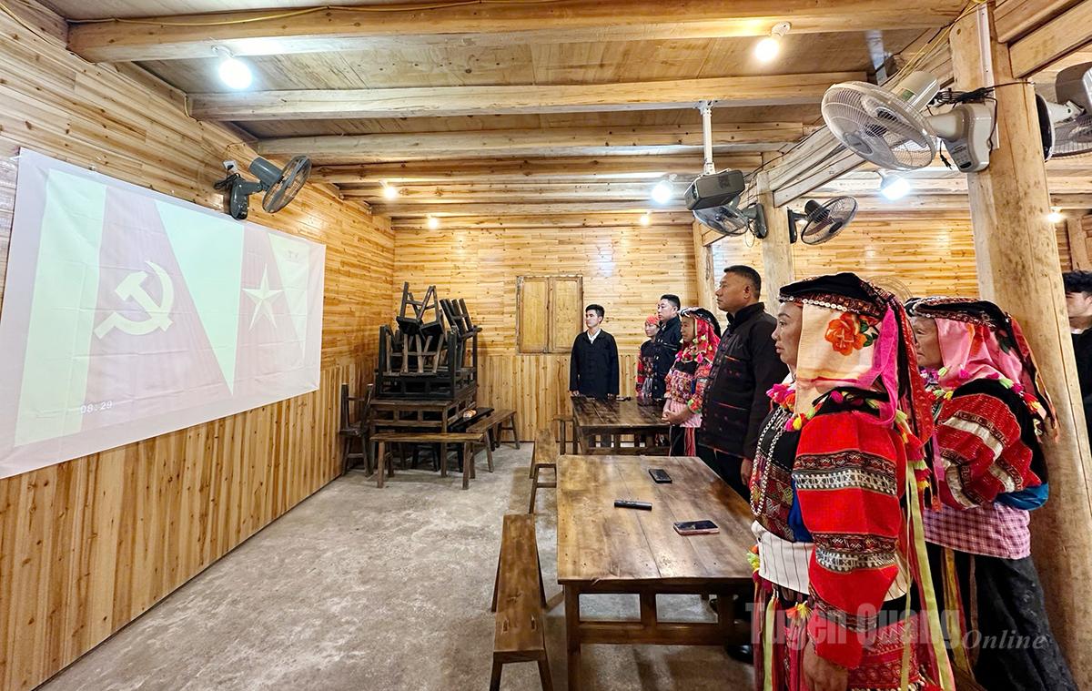 Cán bộ, chiến sỹ và nhân dân xã Bản Máy tới nhà văn hoá thôn Bản Máy theo dõi đại hội. Ảnh: Nguyễn Yếm.