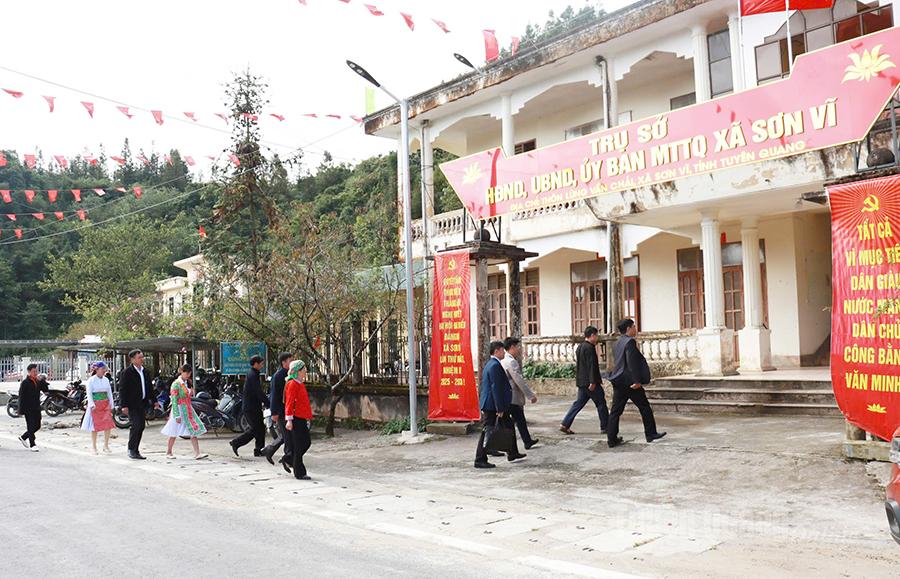 Cán bộ, đảng viên xã Sơn Vĩ hân hoan, tin tưởng vào Đại hội. Ảnh: Trần Kế.