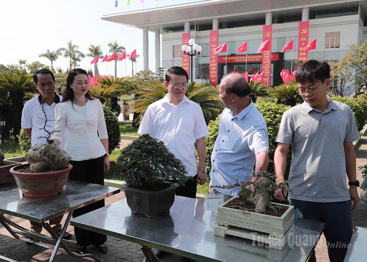 Trưởng ban Tuyên giáo và Dân vận Tỉnh ủy Trần Mạnh Lợi kiểm tra khu trưng bày, triển lãm của Hội sinh vật cảnh Tuyên Quang. bên lề Đại hội.
