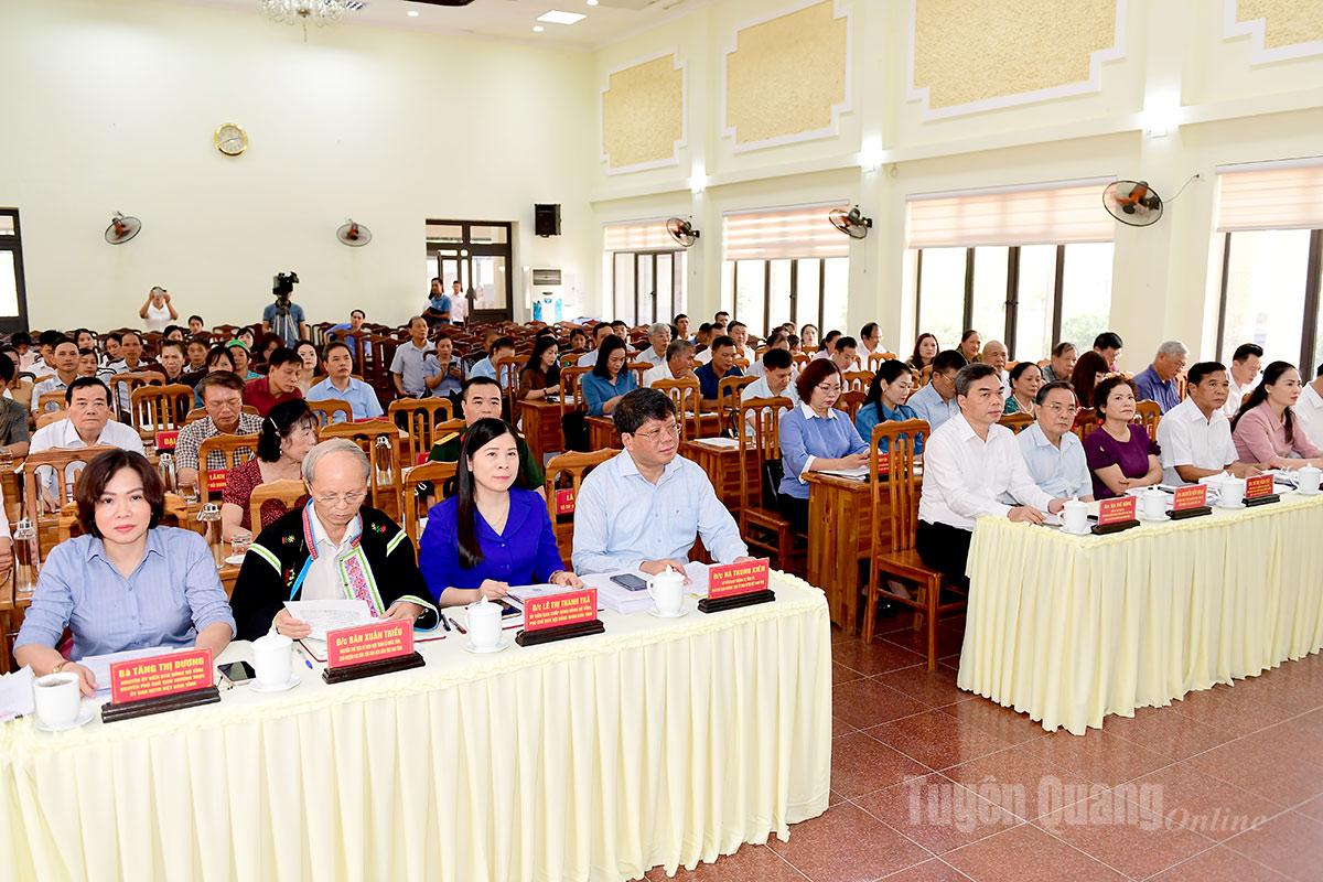 Đồng chí Ma Thế Hồng, Phó Bí thư Tỉnh ủy, Chủ tịch Uỷ ban Mặt trận Tổ Quốc Việt Nam tỉnh và các đại biểu dự hội nghị. Ảnh: Quốc Việt.