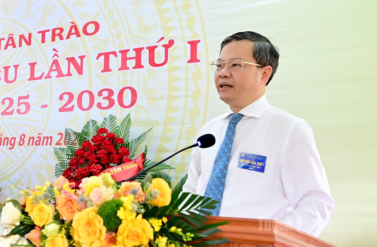 Đồng chí nhấn mạnh, Tân Trào có vị thế quan trọng, là trung tâm Thủ đô Khu giải phóng, Thủ đô Kháng chiến, chứng kiến nhiều sự kiện trọng đại của dân tộc. Nhiệm kỳ mới, Đảng bộ xã đứng trước nhiều thời cơ mới, những cũng đối mặt với các thách thức mới, vì vậy Đảng bộ xã cần phải quyết tâm, khát vọng, có ý trí tự lực, tự cường để vươn lên; lãnh đạo khai thác tốt các giá trị văn hóa, lịch sử, giao thông thuận lợi để phát triển du lịch. Đi đôi với đó phải chăm lo cho các nhà đầu tư để phát huy được lợi thế; có các sản vật địa phương để thu hút và quảng bá với du khách.