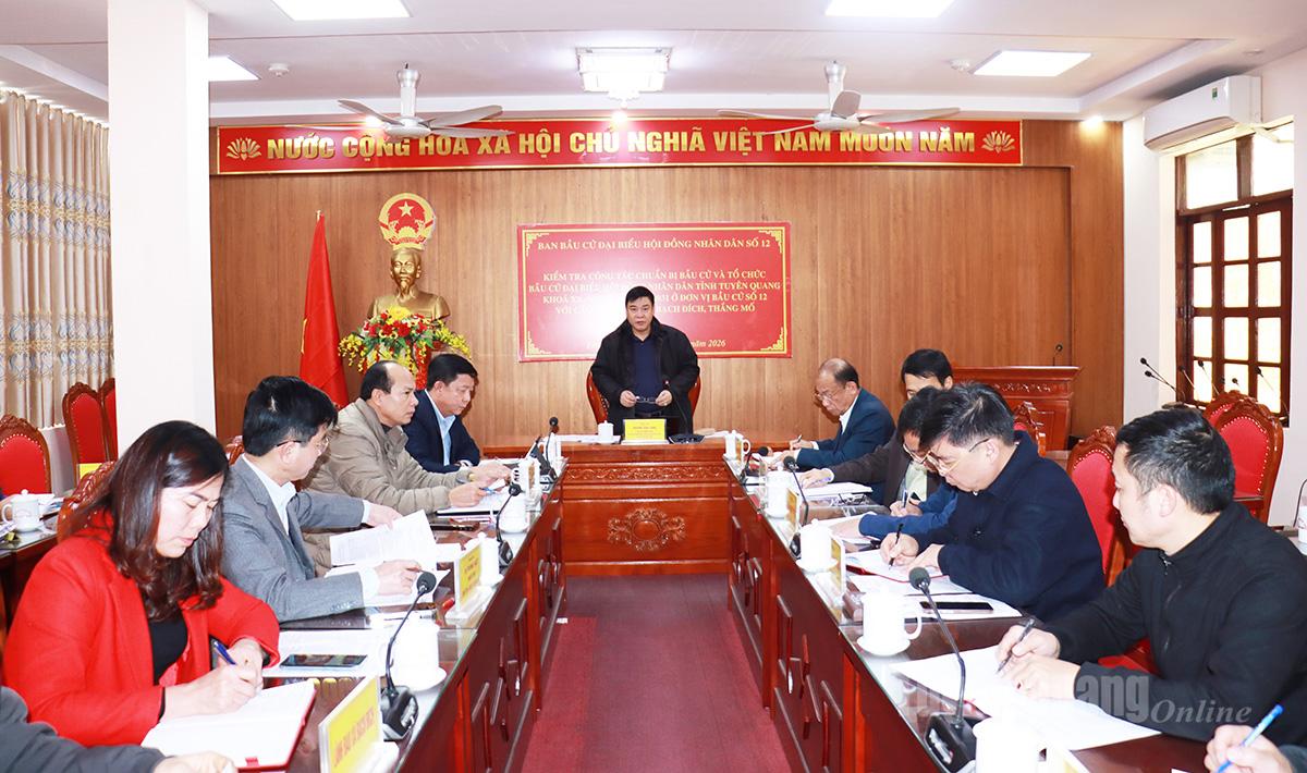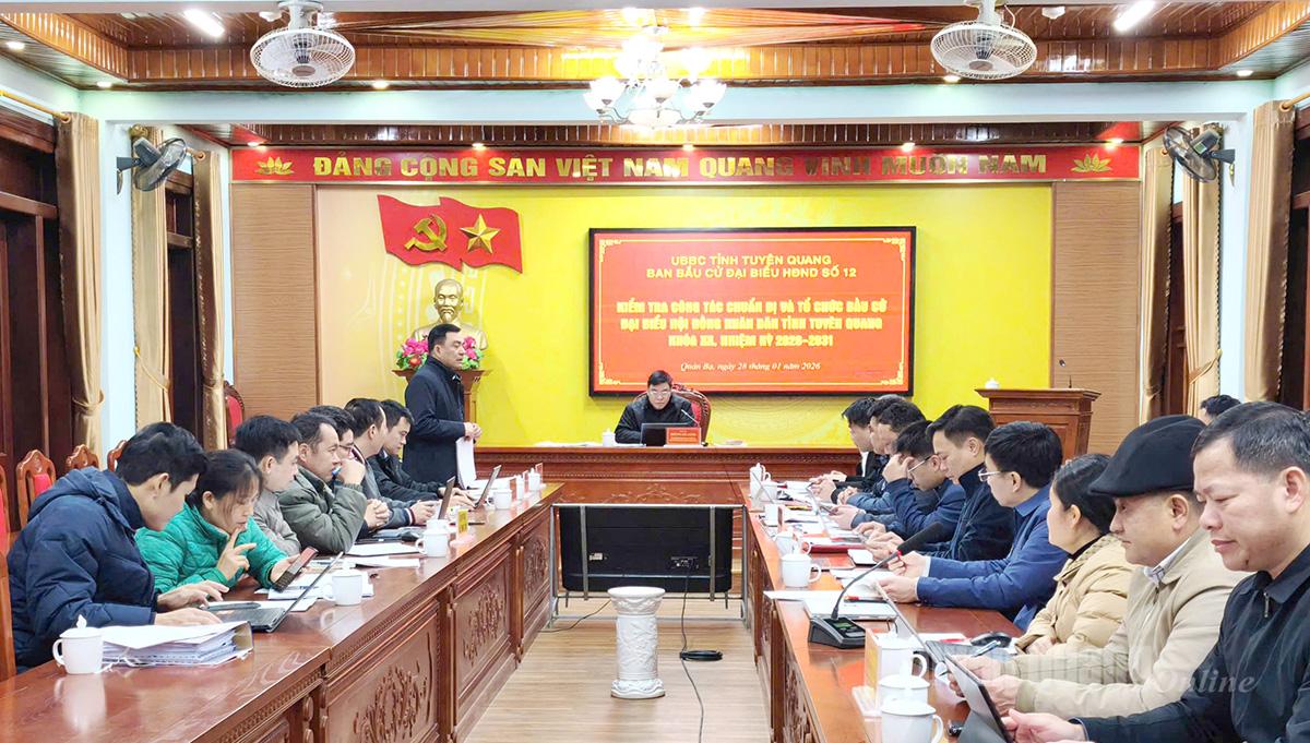 Tại buổi làm việc, Đoàn kiểm tra đã nghe lãnh đạo các xã báo cáo kết quả triển khai công tác chuẩn bị bầu cử. Theo đó, 5 xã đã triển khai nghiêm túc các văn bản chỉ đạo về công tác bầu cử đại biểu HĐND tỉnh Tuyên Quang khoá XX, nhiệm kỳ 2026–2031. Ủy ban bầu cử các xã ban hành kế hoạch, quy chế làm việc, phân công nhiệm vụ cho các thành viên; thành lập tổ giúp việc và tiểu ban phục vụ công tác bầu cử. Công tác hiệp thương lần thứ nhất được tổ chức đúng quy định; các hoạt động tuyên truyền, bảo đảm an ninh trật tự, giải quyết khiếu nại, tố cáo được triển khai đồng bộ…