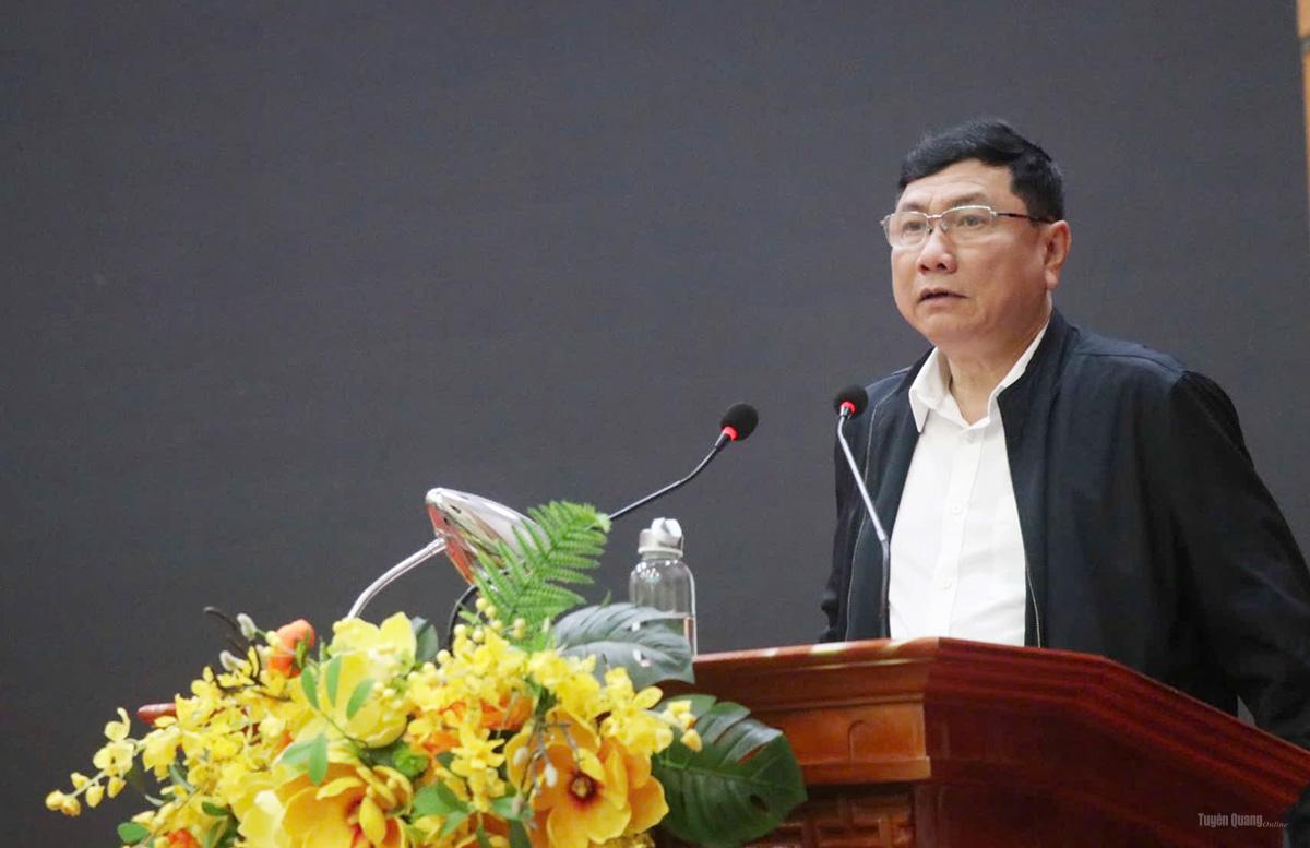 Đồng chí Phùng Tiến Quân, Trưởng Ban Nội chính Tỉnh ủy, Ủy viên Ban Chỉ đạo bầu cử tỉnh, Trưởng Ban bầu cử đại biểu HĐND tỉnh đơn vị số 5, Tổ trưởng Tổ công tác số 3, Ban bầu cử đại biểu Quốc hội số 2 phát biểu tại buổi làm việc.