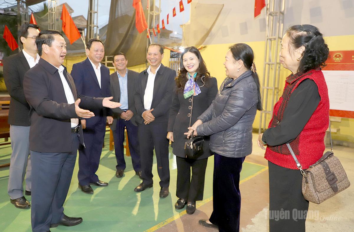 Bí thư Tỉnh ủy Hầu A Lềnh trao đổi, động viên cán bộ Tổ dân phố 13, 14, 15 phường Hà Giang 1 tích cực chuẩn bị chu đáo cho công tác bầu cử.