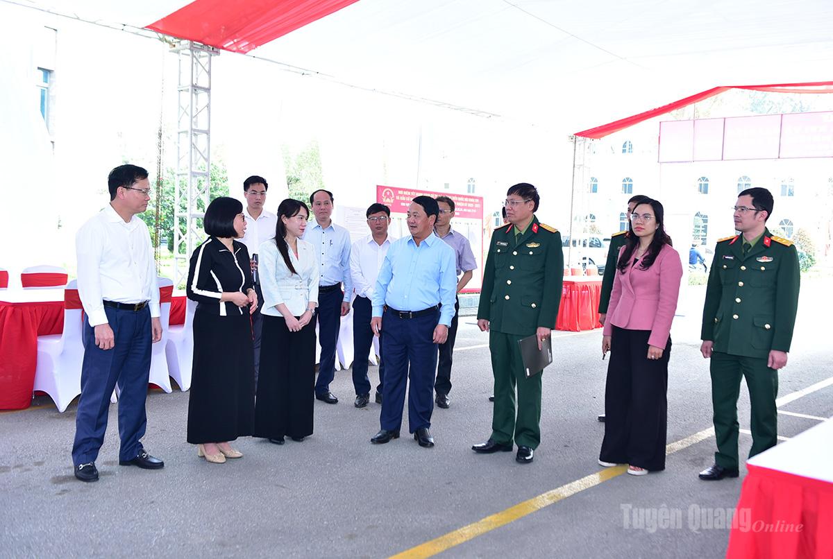 Đồng chí Bí thư Tỉnh uỷ Hầu A Lềnh cùng đoàn công tác đã kiểm tra công tác chuẩn bị tại Khu vực bầu cử số 26 (đặt tại Nhà Văn hoá tổ dân phố Phan Thiết 2), phường Minh Xuân.