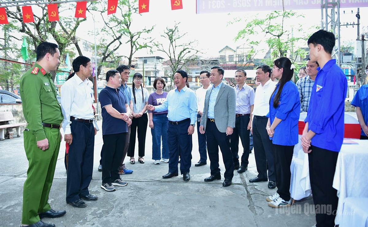 Đồng chí Bí thư Tỉnh uỷ Hầu A Lềnh yêu cầu phường Minh Xuân cần tiếp tục tập trung cao độ, rà soát kỹ từng khâu, từng phần việc, bảo đảm cuộc bầu cử diễn ra dân chủ, đúng pháp luật, an toàn và tiết kiệm.