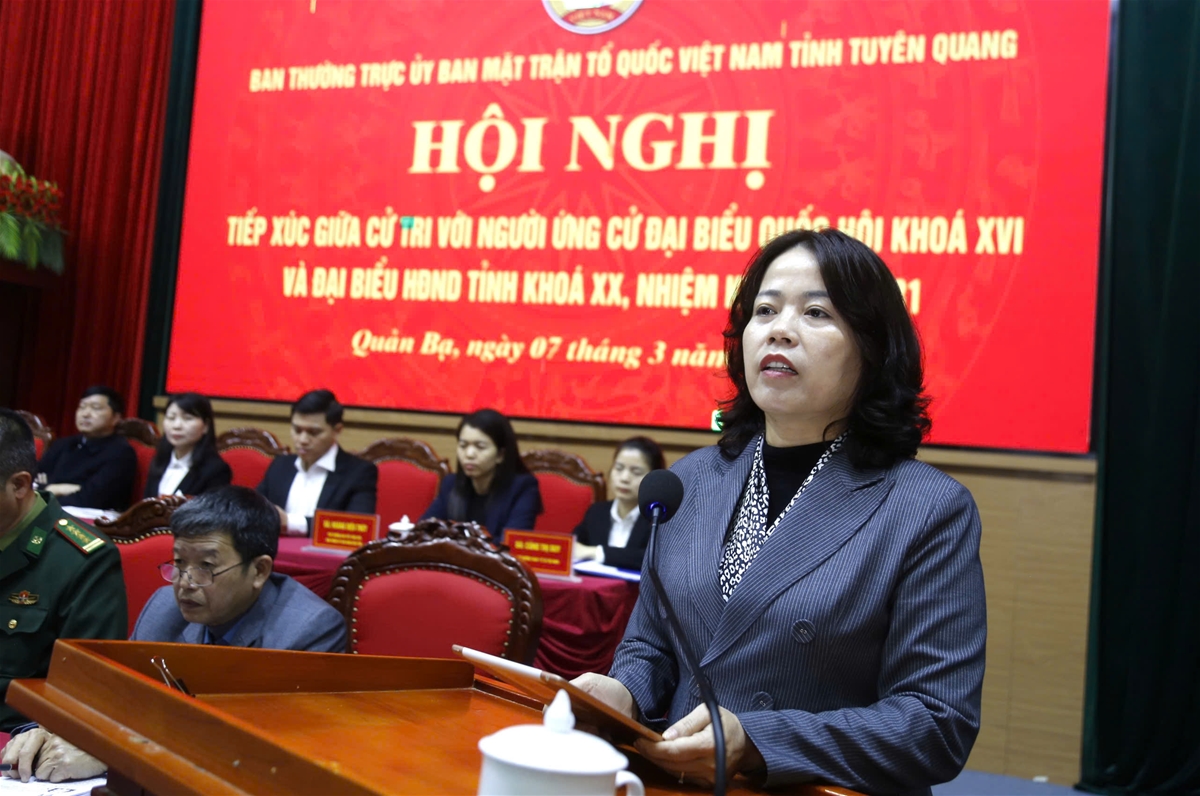 Thay mặt các ứng cử viên đại biểu Quốc hội, đồng chí Lý Thị Lan, Trưởng Đoàn đại biểu Quốc hội hoạt động chuyên trách khóa XV tỉnh Tuyên Quang trân trọng cảm ơn những ý kiến tâm huyết, trách nhiệm của cử tri; đồng thời khẳng định sẽ tiếp thu đầy đủ các kiến nghị để bổ sung, hoàn thiện chương trình hành động, nỗ lực thực hiện tốt nhiệm vụ của người đại biểu dân cử nếu được cử tri tín nhiệm lựa chọn.