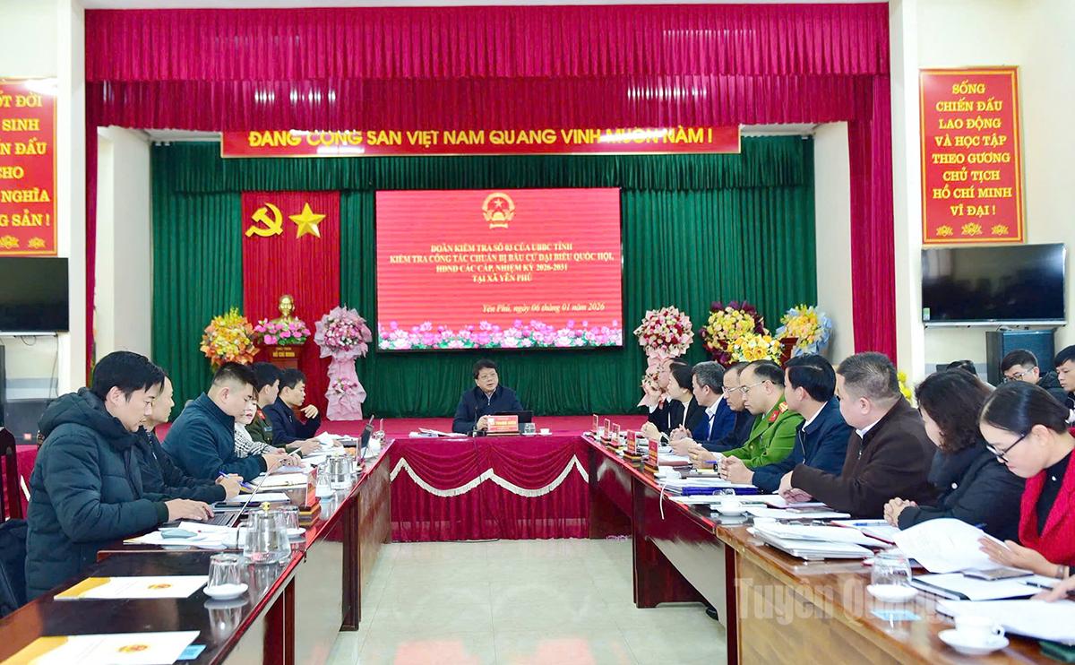 Đoàn kiểm tra số 3 Ủy ban Bầu cử tỉnh kiểm tra công tác chuẩn bị bầu cử tại xã Yên Phú.