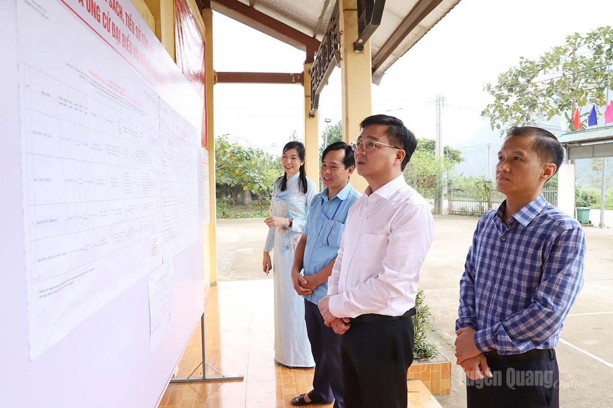Chủ nhiệm Ủy ban Kiểm tra Tỉnh ủy Nguyễn Hưng Vượng kiểm tra tại khu vực bỏ phiếu thôn Bản Khiển, xã Lâm Bình.